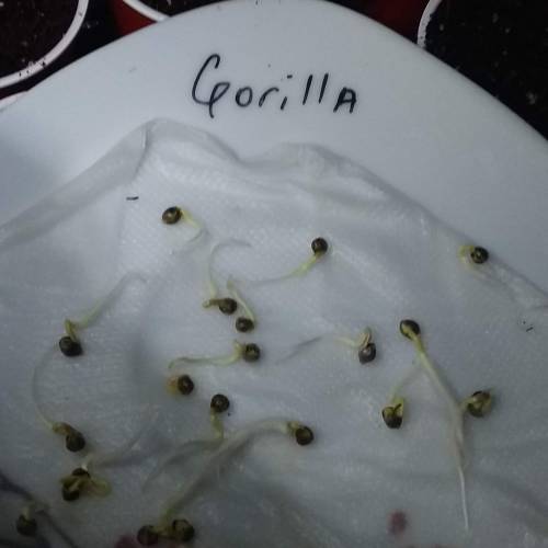 Семена Royal Gorilla продемонстрировали 100% прорастание – все 15 семян очень быстро раскрылись и показали свои «хвостики». Гровер высадил их в маленькие пластиковые стаканчики и отправил в гроубокс.