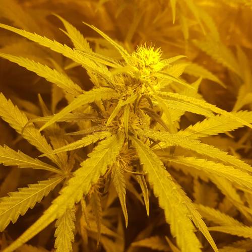 Растихи продолжали тянуться и на пятой неделе достигли отметки в 60 сантиметров. Кусты полноценно зацвели и начали формировать шишки. В гроубоксе появился стойкий аромат, который усиливался с каждым днём. Температура воздуха при включенной лампе составляла 24 С, а влажность воздуха находилась на отметке 50%.