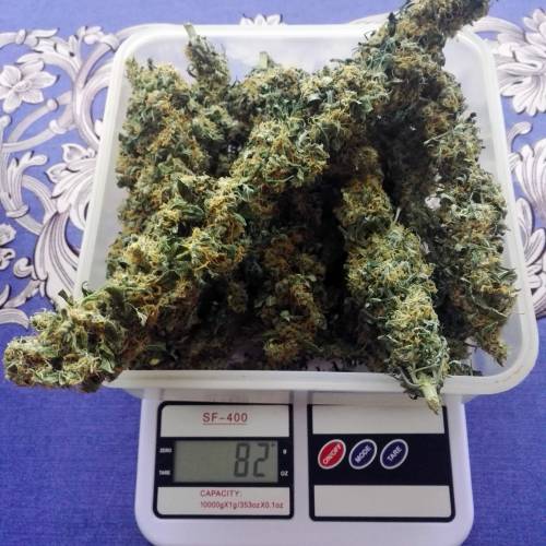 Урожай был собран ровно через 9 недель с момента высадки семки в грунт. Гроверу удалось достичь отличного результата, особенно учитывая то, что это был его первый опыт выращивания конопли (хоть и подготовился он к нему очень основательно). В итоге с одного куста автор репорта получил 381 грамм мокрых шишек, которые после просушки показали на весах 82 грамма.