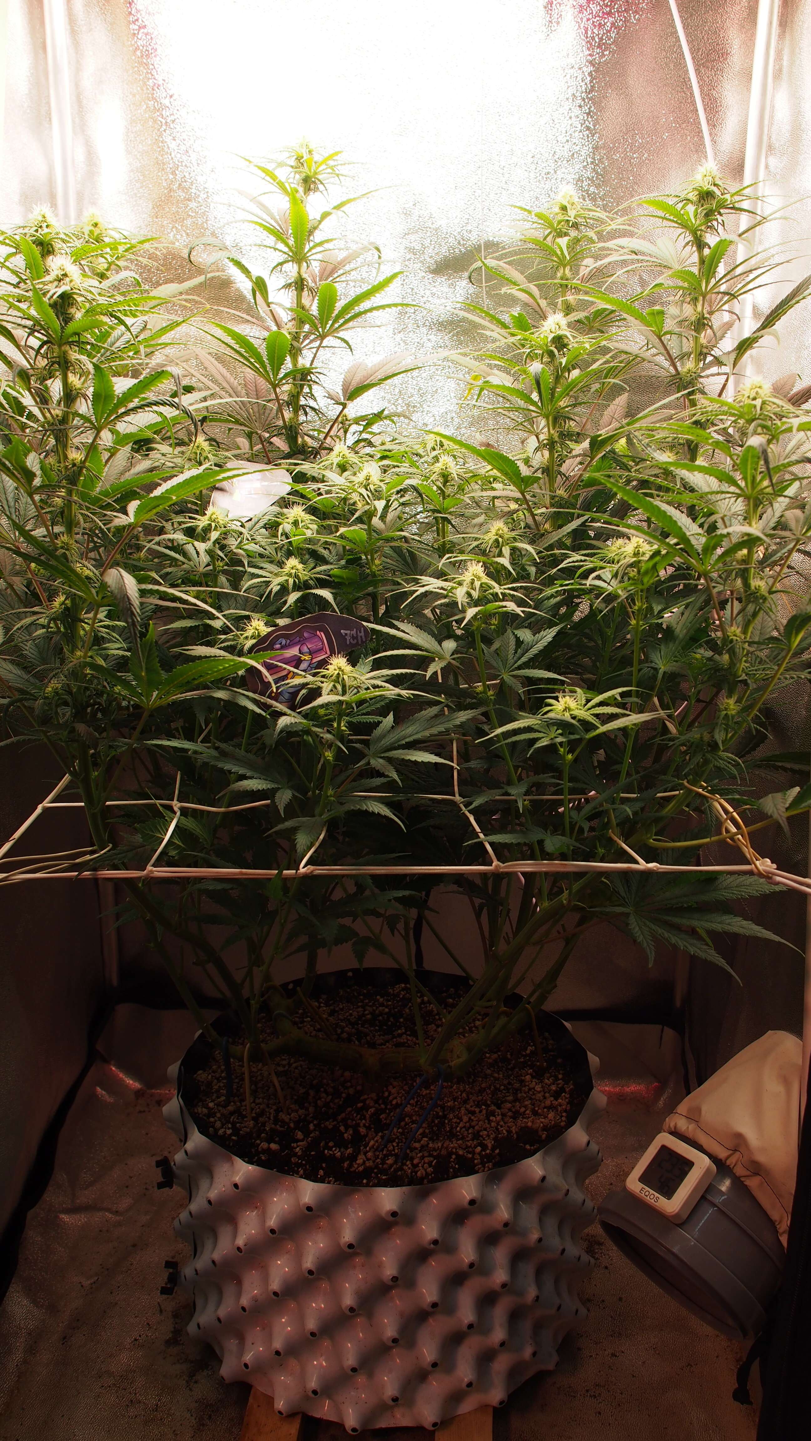 Полив через день по 3.5 литра. В аэрпот привык засовать палец у края для проверки влажности грунта. Тут такой вариант не прокатывает - корневая настолько развилась, что места "для пальцев" там уже нет совсем.