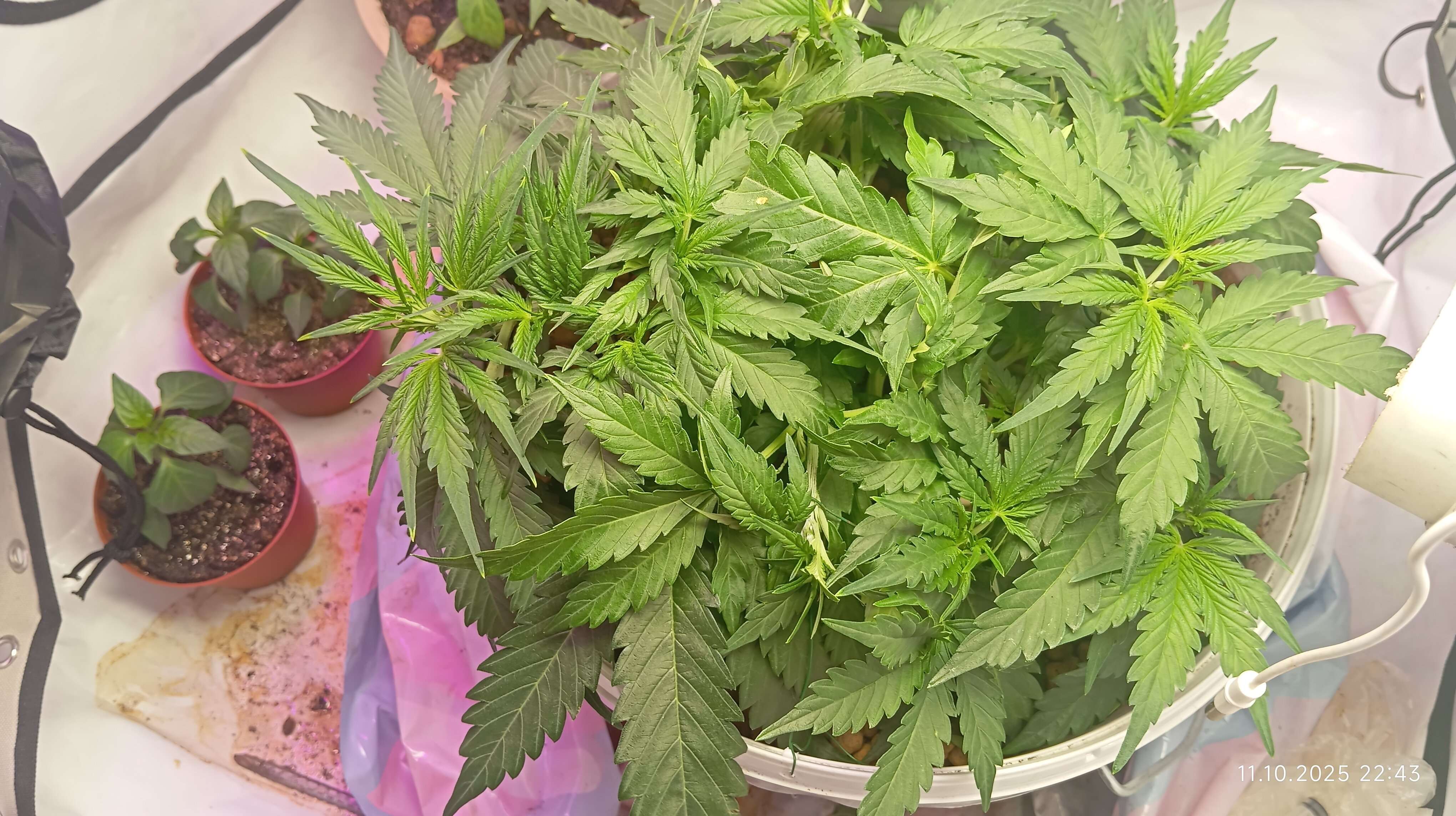 Всем добра!иВот 25 день вчера полил литром компота осень лайтовый легенький а сегодня по весу чувство что съела,дальше начал подгибать срезал три веерных листа где-то из середины ну очень мешали лапухи,чуть развел боковые боюсь представить что будет,чуть уже начался проявлятся запах узнаевымый,обычный,но лёгкий если палатка открыта днём то вечером приходиш и сразу чувствуется,нужно в строчке фильтр,что за ствол,уже с палец мой средний рост не замерял не вижу целесообразности.