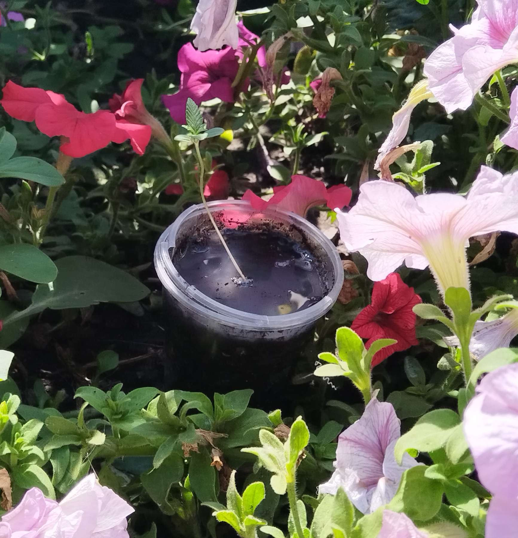 замочил семки в перекиси водорода, обрезал пивную баклажку 30 литров, насыпал щебня пол ведра, грунт цветочный 1×1 с землёй с огорода, перемешал залил корневином, семку прорастил в том же грунте в пивном стакане , 10 дней растёт, слабенько.