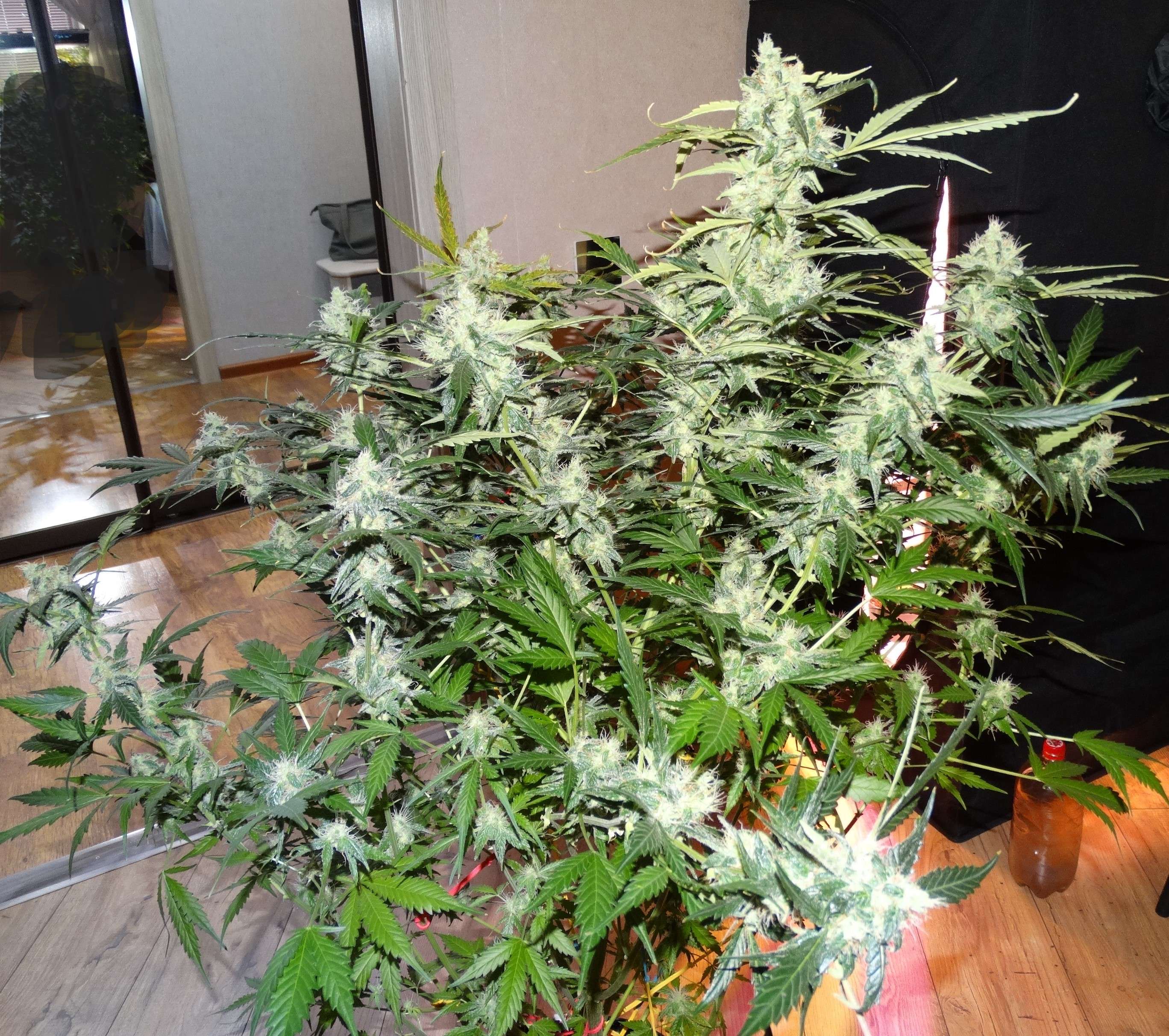 Трихомы стали янтарными, на сколько смог разглядеть, запах очень сильный. Планирую завтра срезать, ну а сегодня выключил свет и добавил лед в прикорневую зону.
