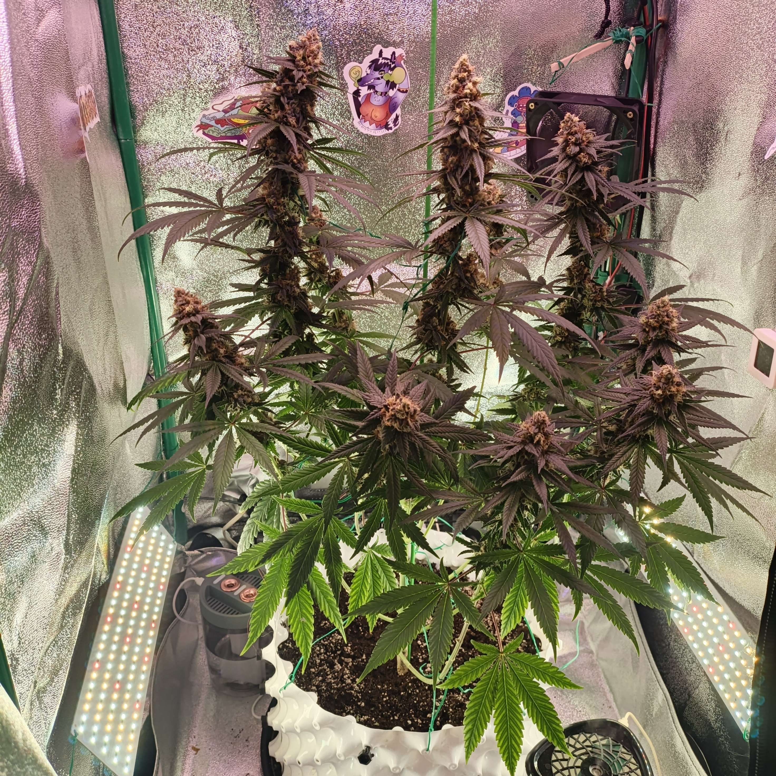 внизу канал на вдув 100мм внутри вентилятор, увлажнитель с вентилятором, и вытяжка с фильтром, что делать если на улице +24,8, + температура от лампы вентиляторы так сильно не собьют тепло? как сделать 24 на выдаче точное число? как у тебя бро