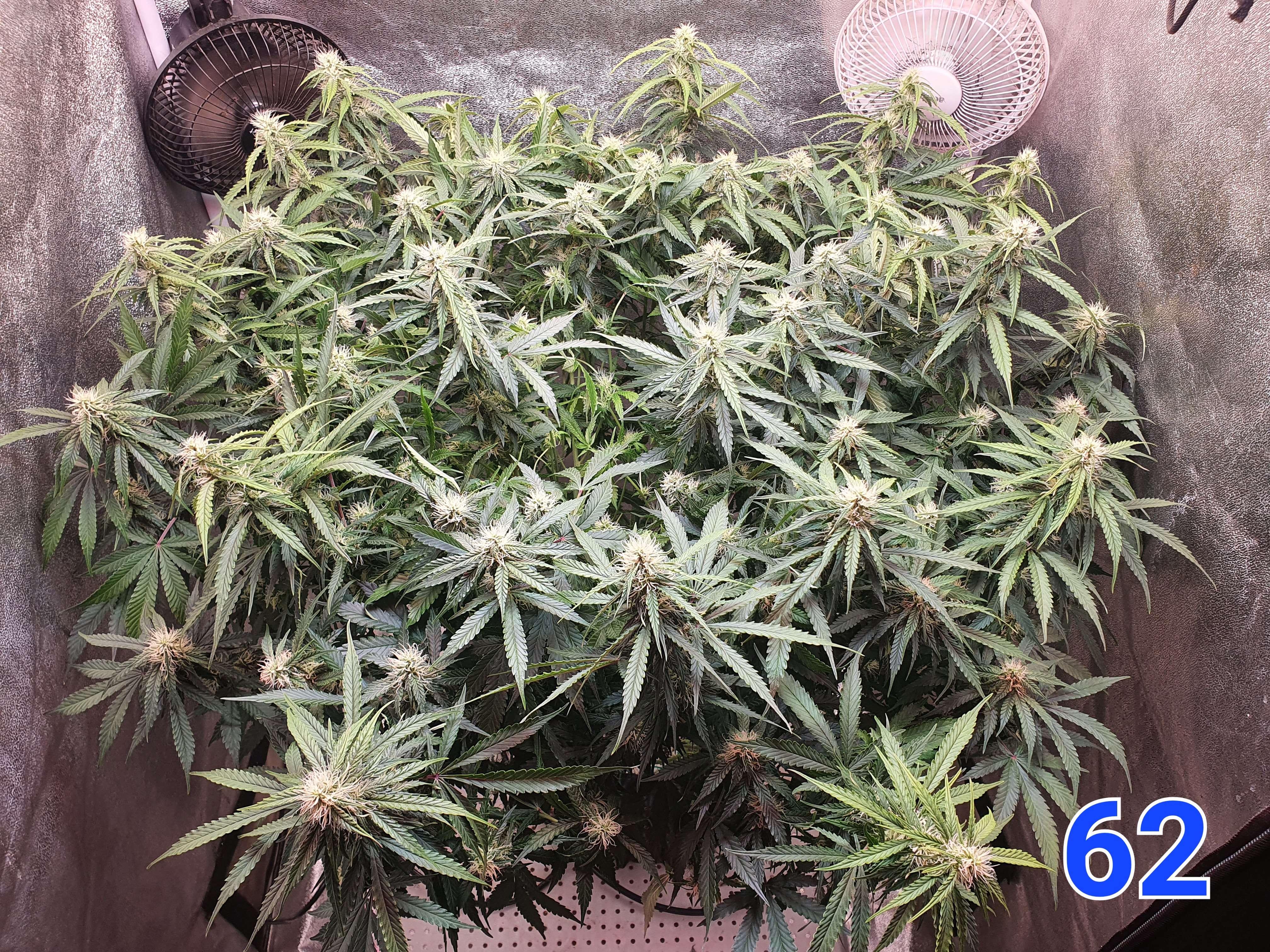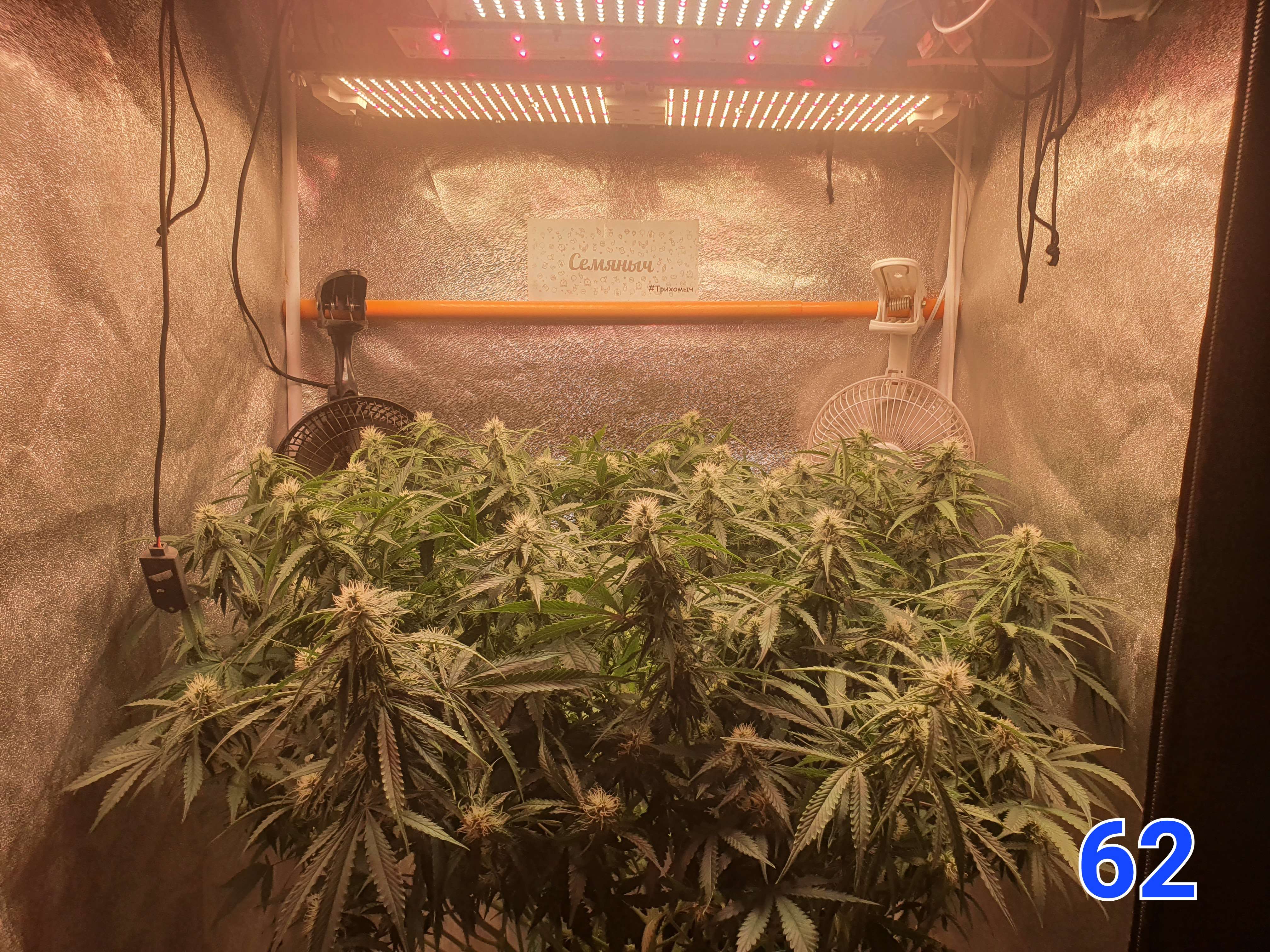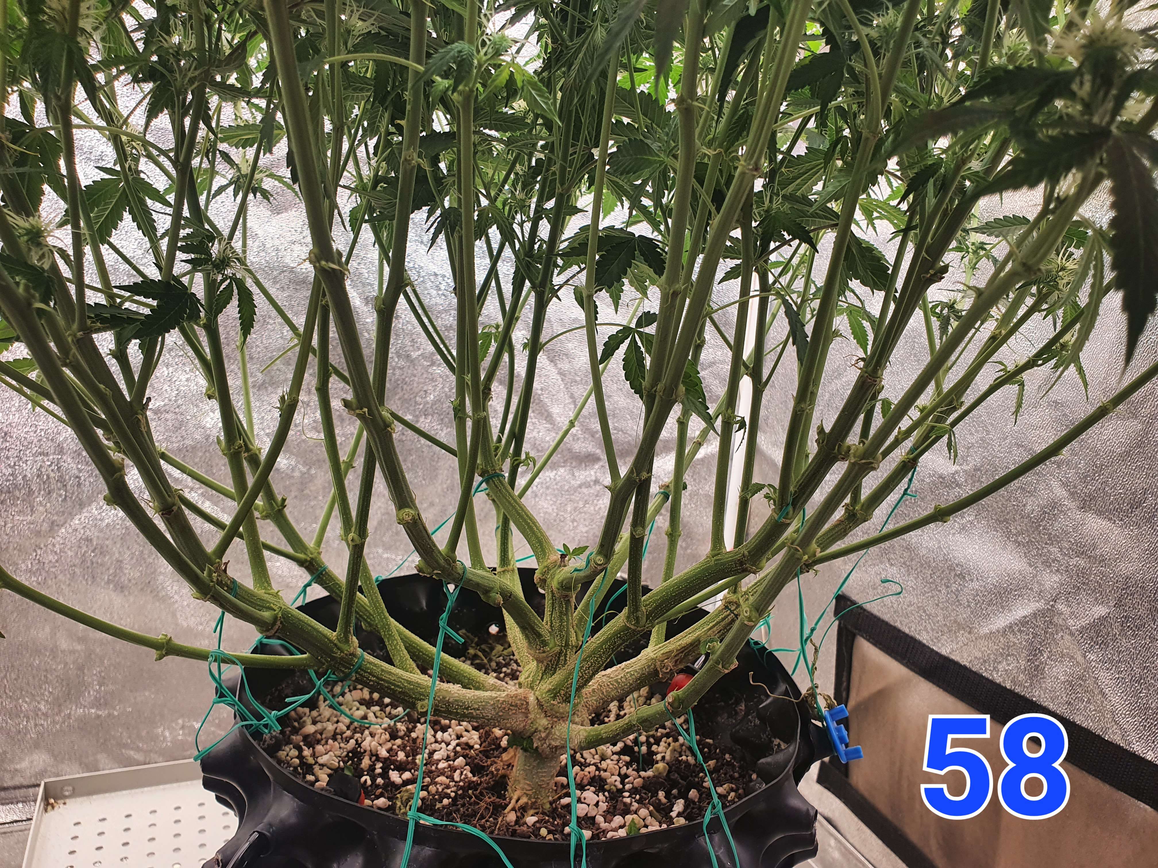 На 57й день забилась система капельного полива и вместо 3 литров вылила 0.5, от чего куст слегка приуныл, но ничего критичного не произошло.