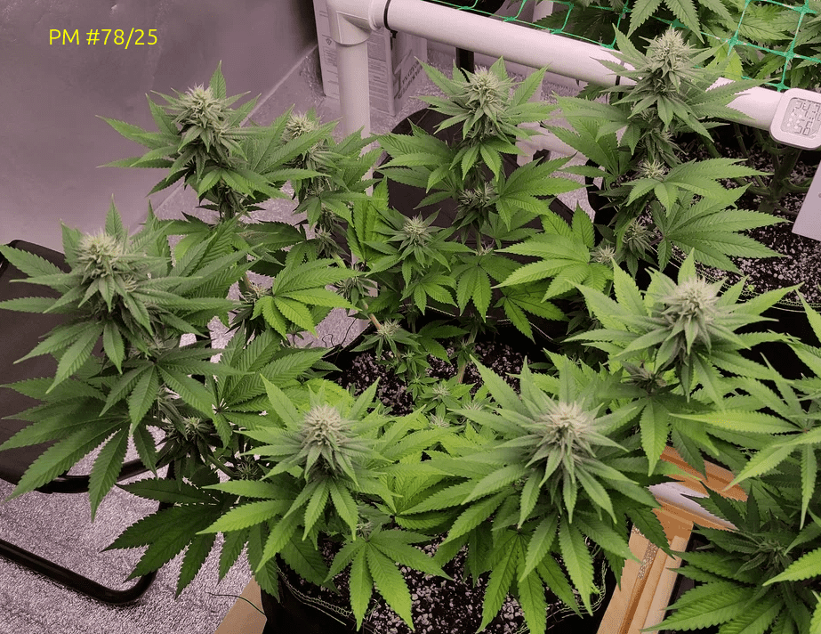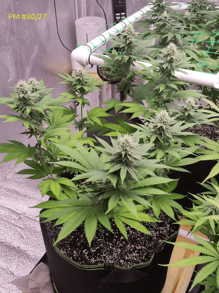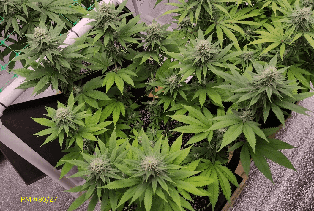 Рост остановился, бошки начинают набирать массу. 2 полива под фосфорное окно + трихомайзер под корень (вместе с компотом).