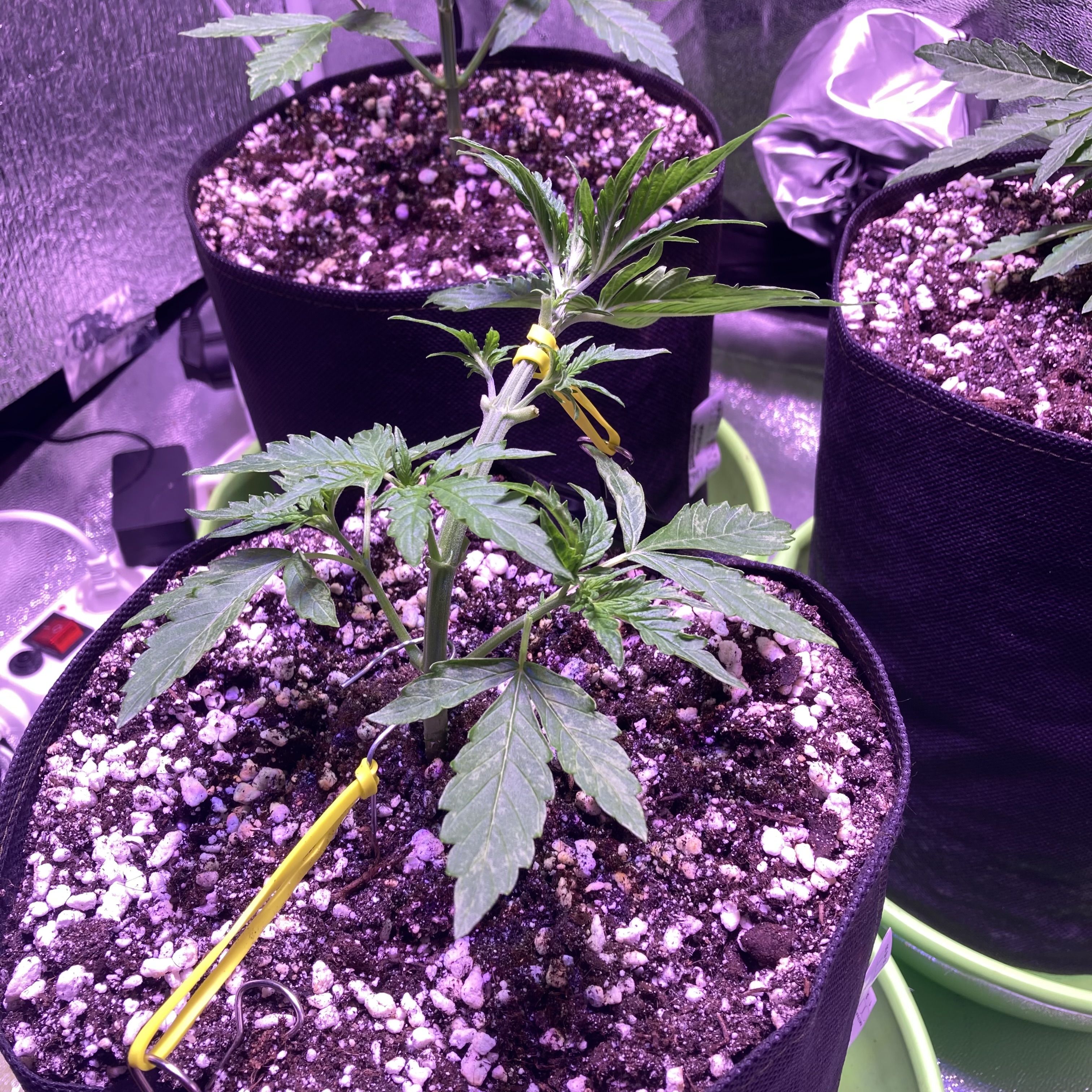 Рок-машина мощно тянет резину, словно пытается сорвать прищепку! Благодаря низкострессовой тренировке, свет ровно расходится по кроне, а побеги друг другу не мешают. Дефолиация убирает тень и добавляет пространства для развития. Запах полевой травы стал насыщенным и едким.