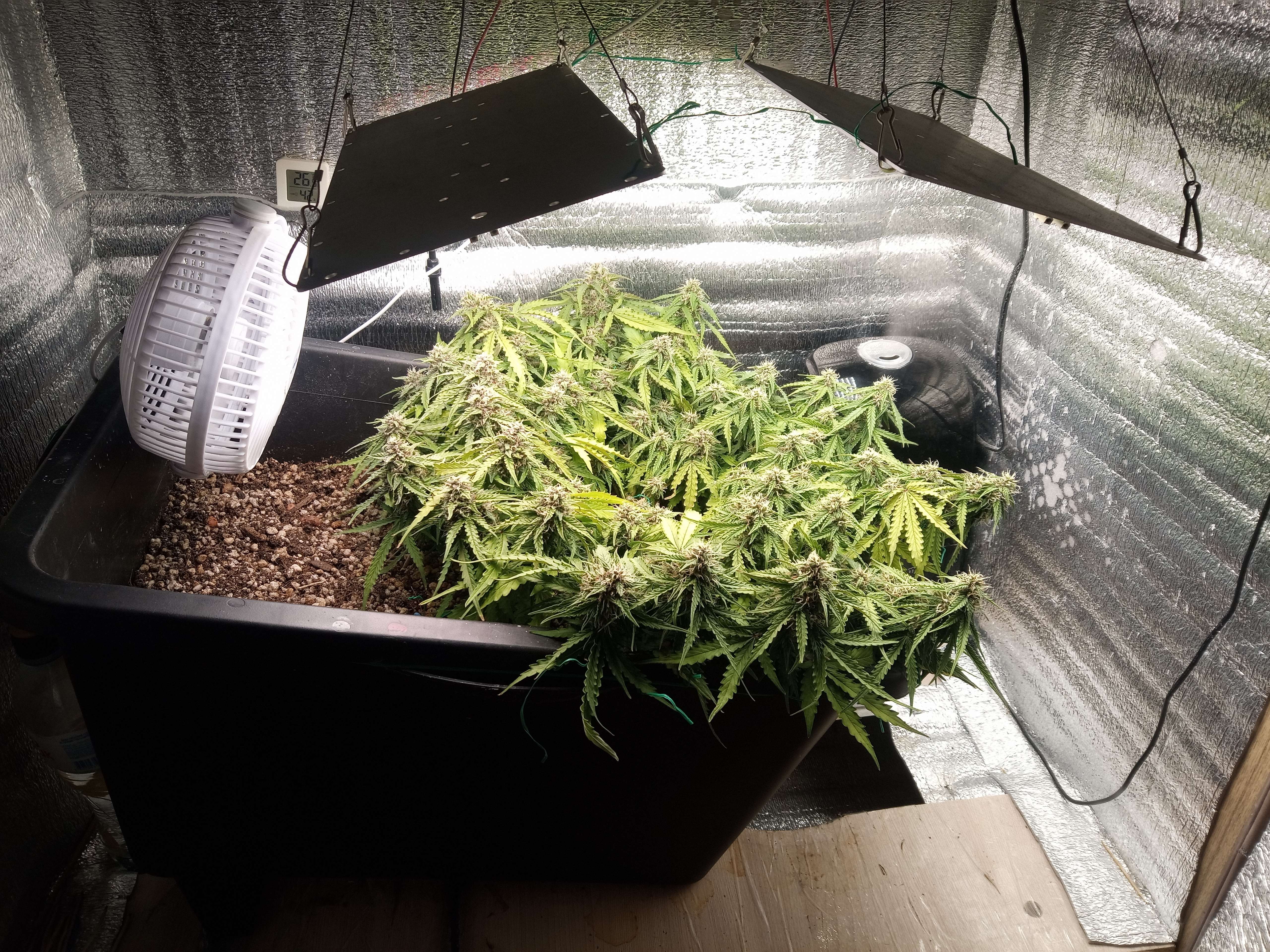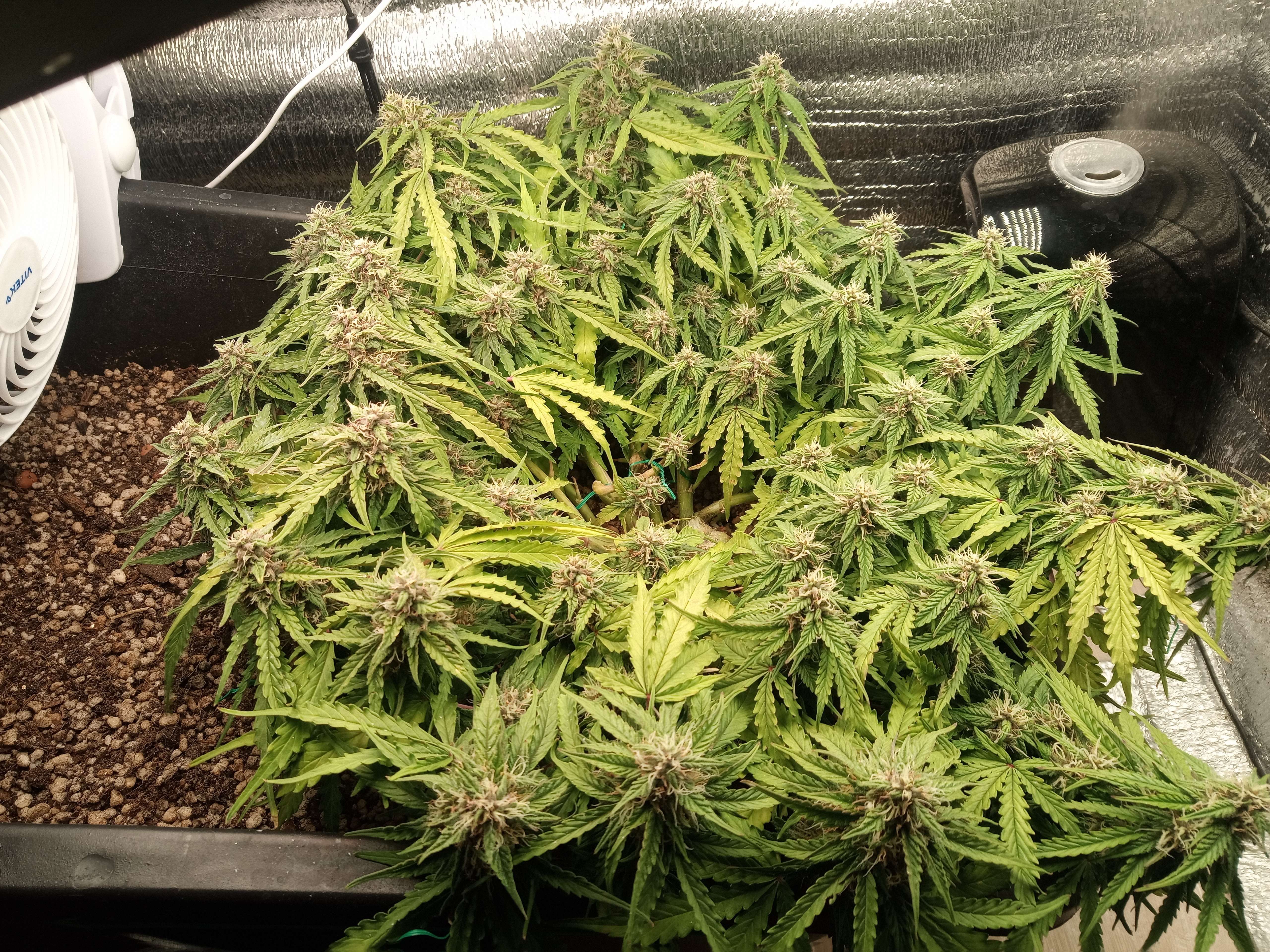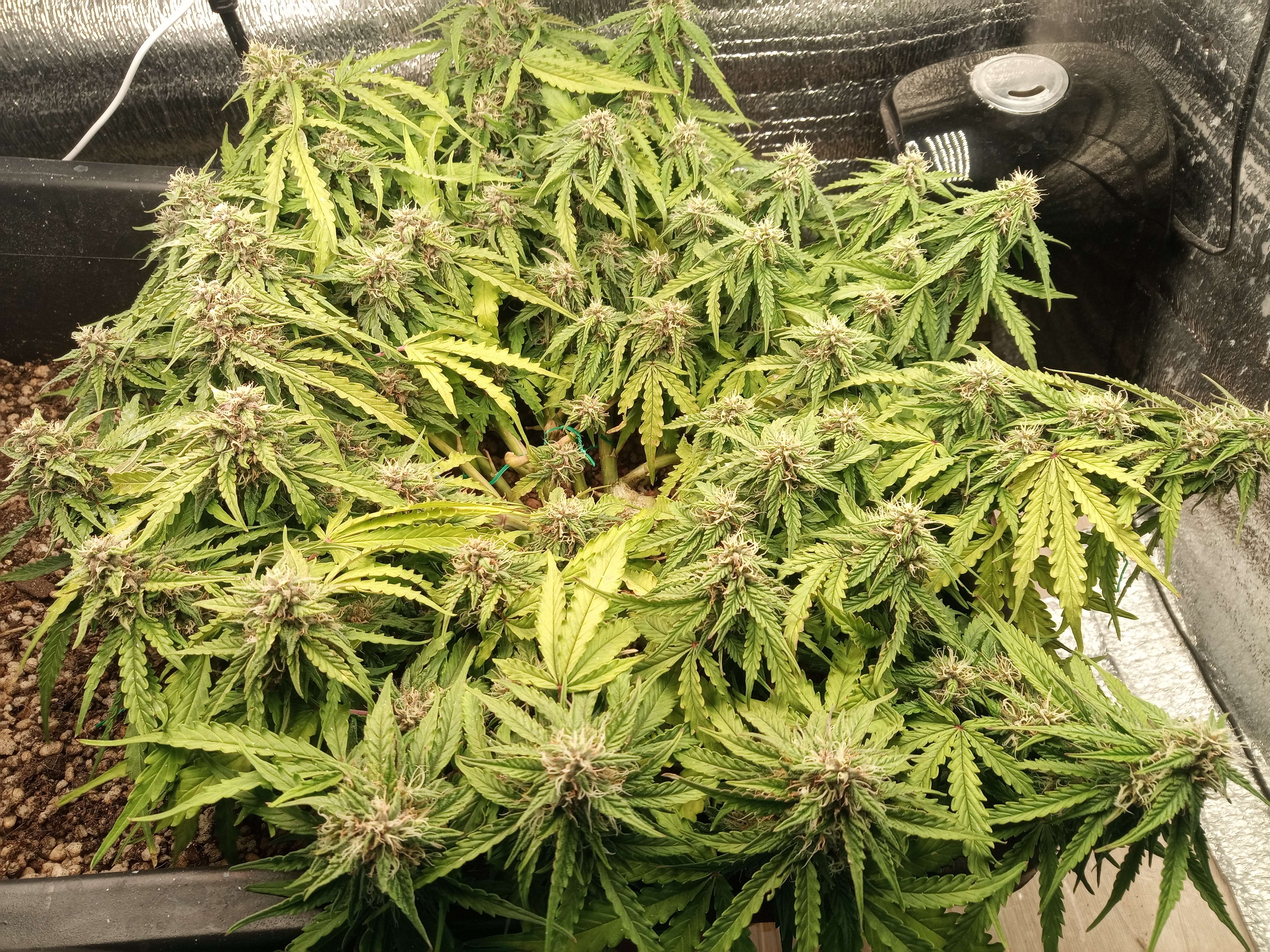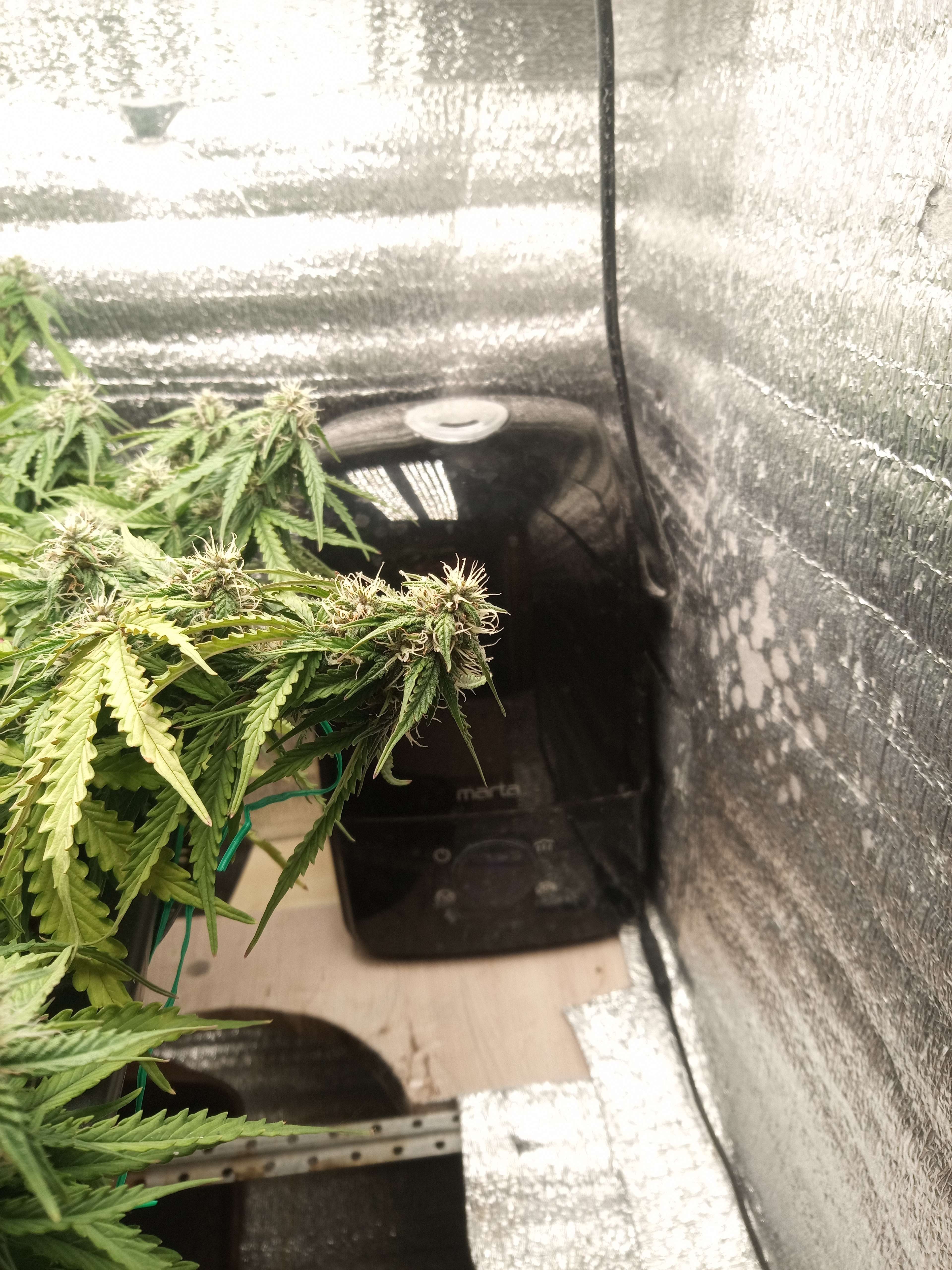 upd неделя скучная, растем, потихоньку желтеем. это растение развивается явно быстрее предыдущего, даже несмотря на тормоза в начале цикла. фото с этой недели сделаны на 62й день от каски, и, в принципе, харвить уже можно, и есть что в плане веса. трихомы янтарные начали появляться. но при этом обильное образование новых стигм. рипена недели 2 назад плеснуть, и был бы готов за 2 месяца. вот что Фульвик животворящий делает.