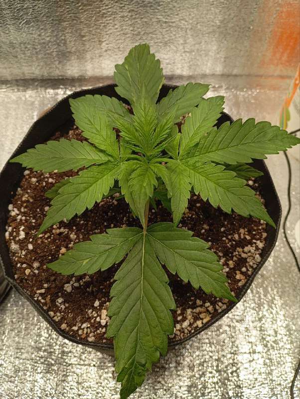 Что-то с ph у тебя, листья кривые. Ph 6,4 полей подожди следующий этаж листьев чтоб ровные были тогда поливай удобрениями имхо.