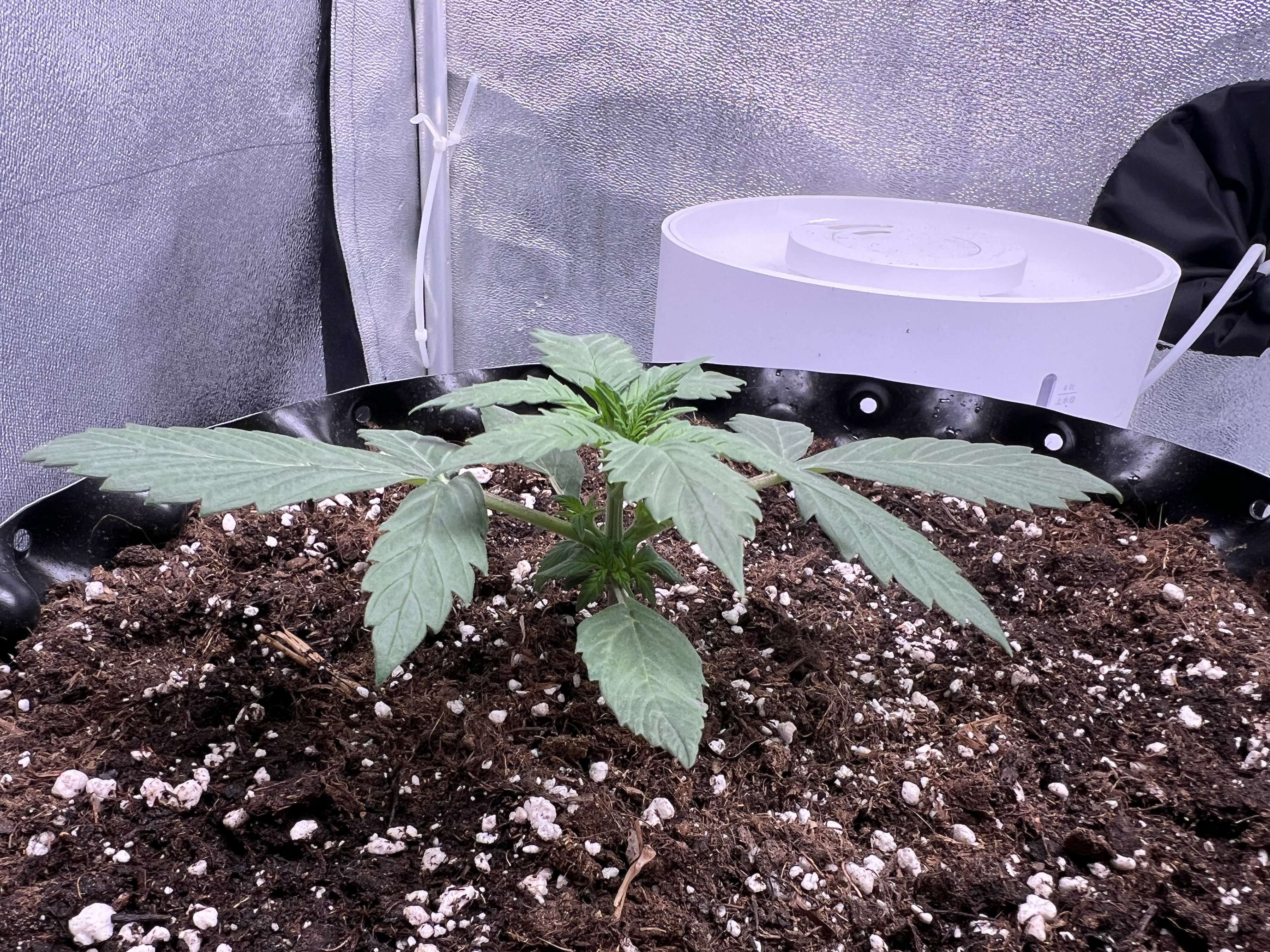 Люся выглядит хорошо, за ночь не подросла. Цвет насыщенный, листочки выглядят здоровыми. Полил её впервые компотиком 500 мл (1 мл/л биогроу).