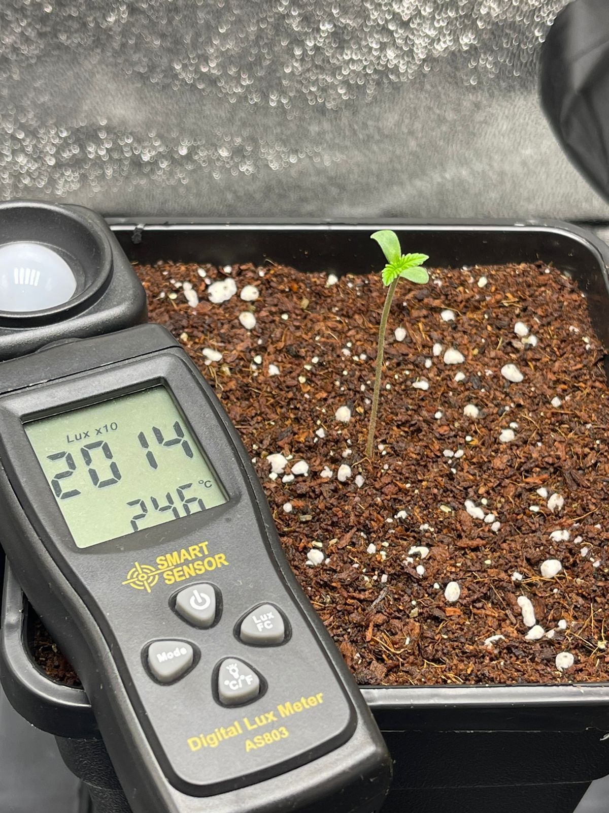 Моя Девочка родилась 1 августа 🦁 вылезла без каски и к вечеру открыла семядольки. Поставила на сутки стаканчик . Свет висит 30 см от горшка 10.000 люкс
