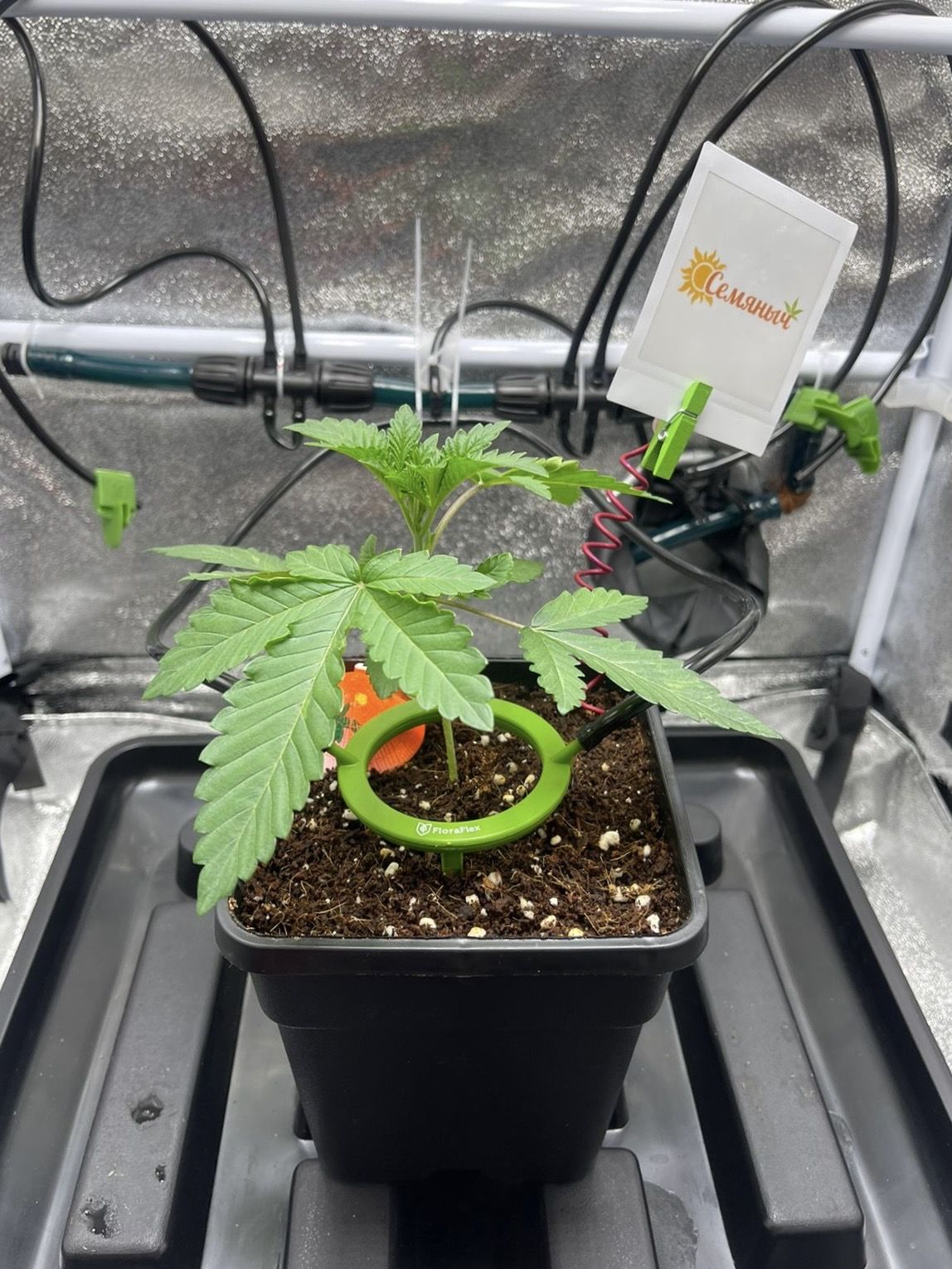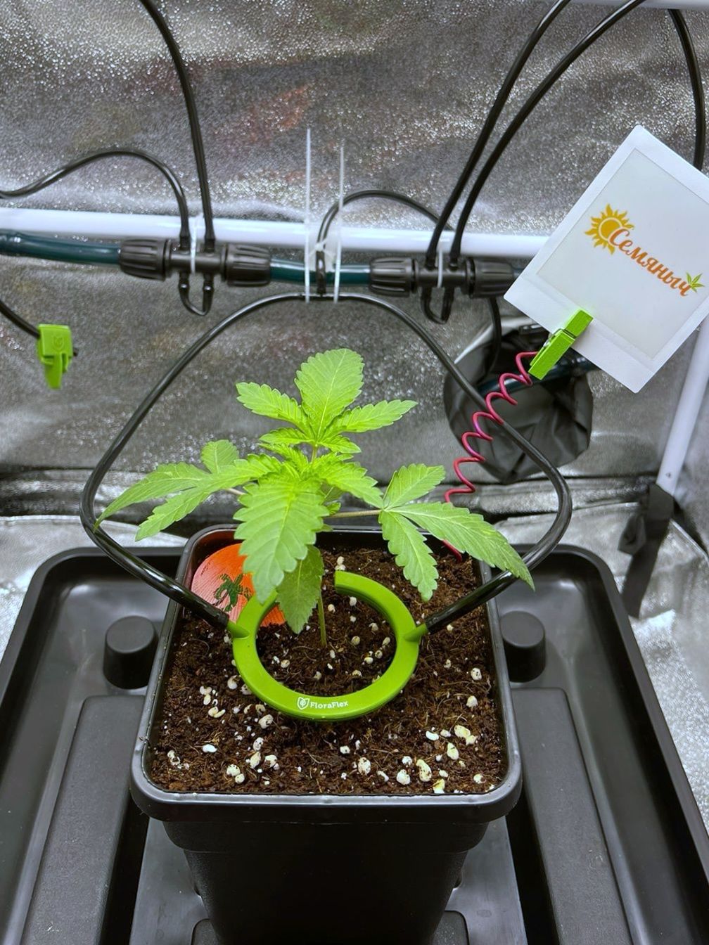 Изначально горшок у меня 15 литров , но очумелые ручки умело уменьшили горшок до 10 литров ( инфа/фото будет в коментариях ниже ). Буферизировался кокос , как и для малого горшка , только раствор с calmag разведен до 700 ппм, далее промыт и полит легким компотом из базы Grow A+B с уже посаженным цветком.
