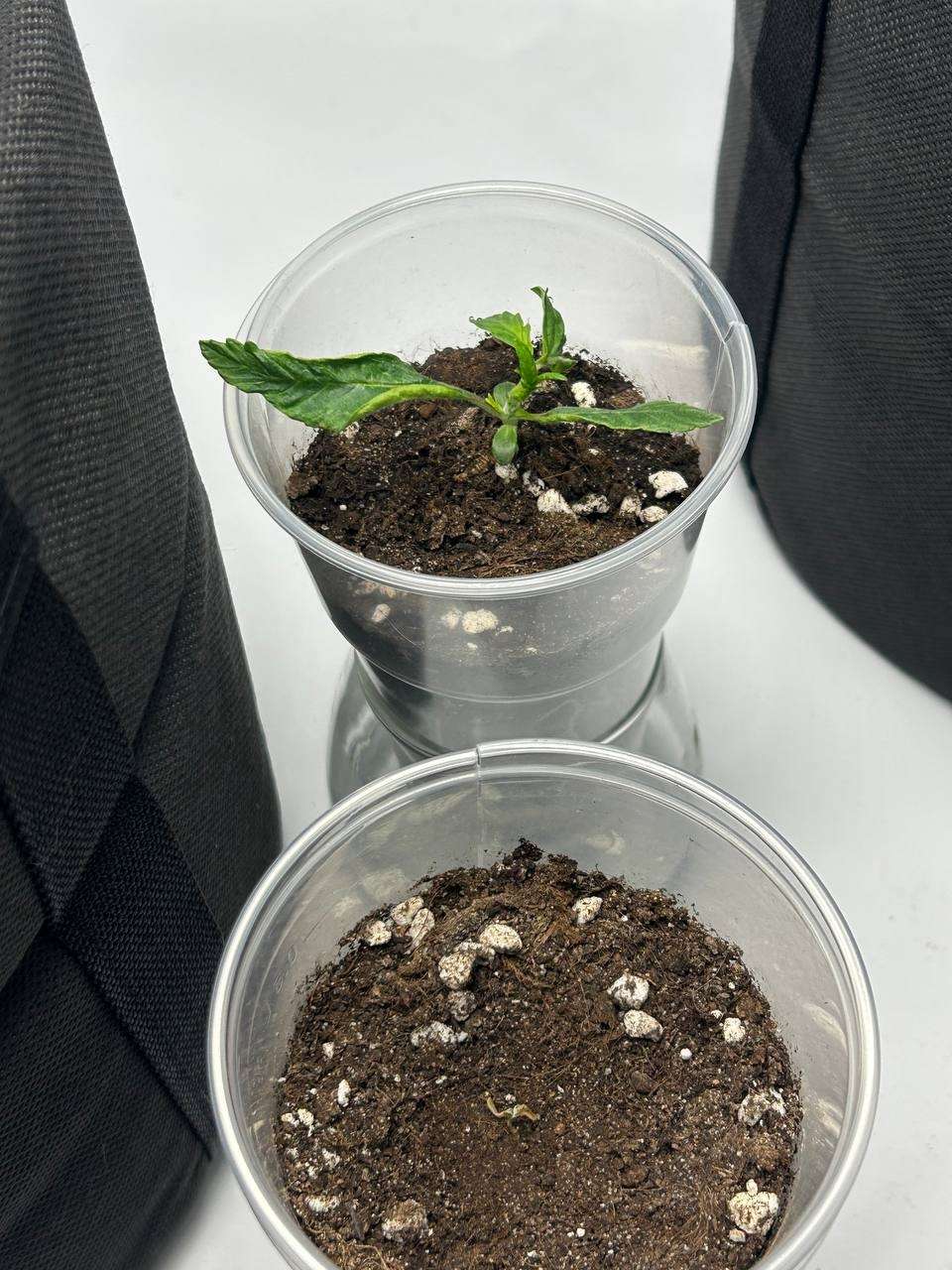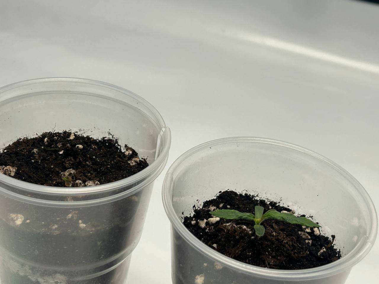 ну что ж, вот и пошла вторая неделя, жду пока пустят вторую пару листьев и буду аккуратно пересаживать в мешки, т.к второй калаш остановился было принято решение на его место поставить auto maria III,посмотрим что будет дальше, поливаю с пулика и совсем не много.
