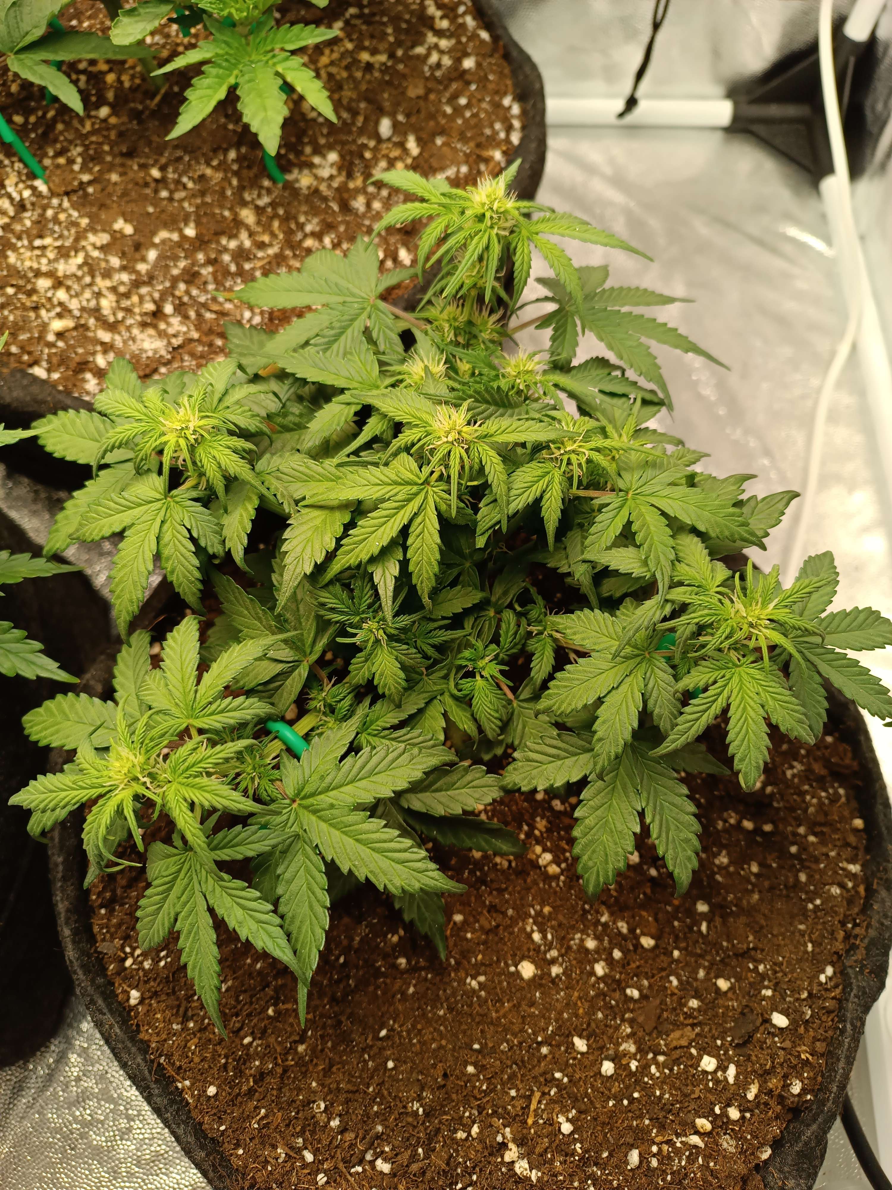 Через пару дней, когда земля подсохла, полил куст удобрениями для первой недели цветения по таблице (на кусте уже начали появляться первые трихомы) с добавлением CalMag и обрезал самые больные листья.