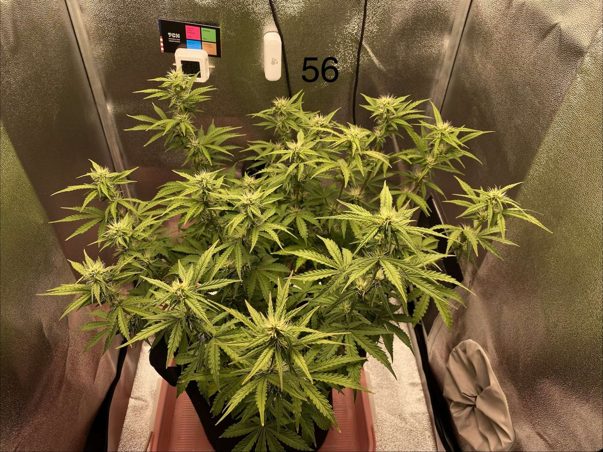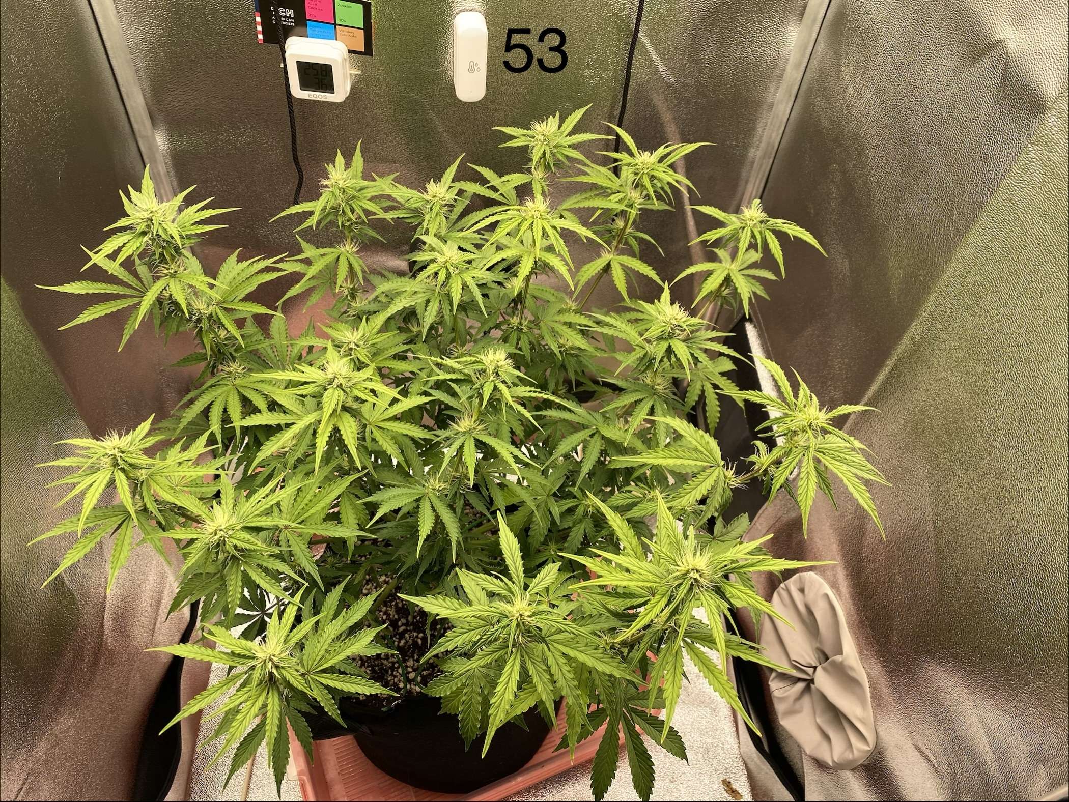 Куст развивается довольно медленно, думаю это совокупность перекорма и количества растущих кол, множества паразитных веток и попкорна. Но всё же заметил появление трихомок на паре соцветий.