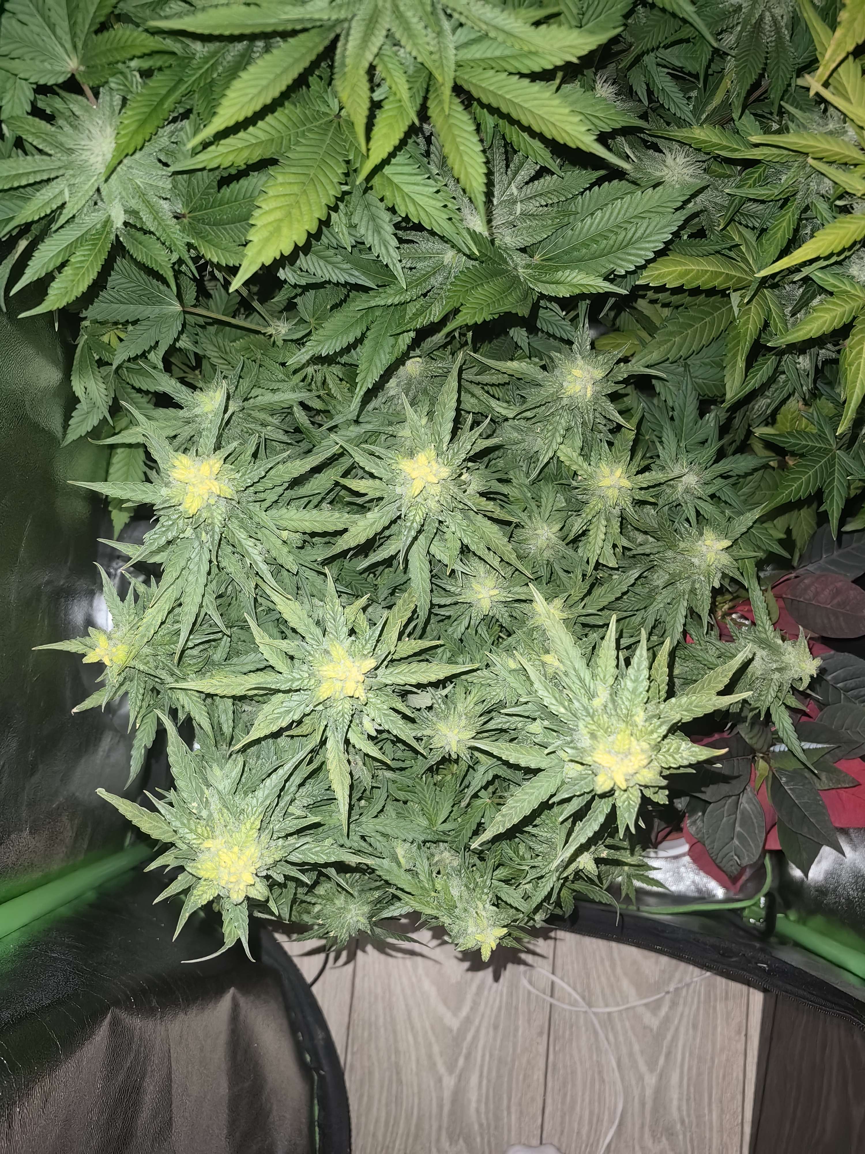 Ну что, вот и 11 неделя жизни сатаны. В массу чёт не хотим набирать, шишечки получаются не столь мясными, как хотелось бы. Но насколько же много сахара, стал липким до ужаса! Ещё начинаю потихоньку сбавлять темпы кормежки, будем плавно готовиться к харвесту. Думаю, недели 2 край будет стоять, потом под нож — и на сушку его.