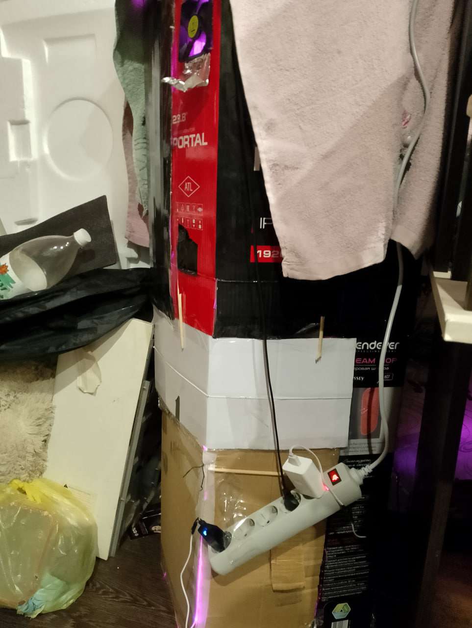 Почему решил начать ростить? Просто попалось пара видео и меня зацепило как люди ухаживают за кустами как за ребенком. Стало интересно начал читать, интересоваться, разбираться во всем этом. Так и решил что хочу попробовать себя в этом деле. Соорудил "бокс" если можно так его назвать)) из коробок которые стояли и мешались, изнутри обклеил фальгой и пенофилом(вроде так называется), снизу на уровне стебля поставил кулер 8см с макс. оборотами 2100(как по мне для моих целей подойдет вполне), сверху прям под потолком так же поставил такой же кулер на выдув подключил к одному проводу юсб и заряднику от мобильника на 33v и 5А, да они работают не на максимум но пока что этого хватает с головой, увлажнитель самый дешман за 250руб с озона так же как и лампа как многие ее здесь называют "сутенерка" на 50в замерил через приложение, от ведра до лампы 15см показывает 18000-19000, но я уже дозаказал такую же "сутенерку" на 100в и борд на 36в чтобы был хоть какой то холодный свет(Да я понимаю что свет ужасный и что нужно покупать минифермер борды с самсунг диодами и тд и тд., но моя цель за максимально сжатый бюджет вырастить средний куст.) так же поставил термометр гагрометр так же самый дешман. Ведро обычная пластамаса 5л. с дырами снизу для дренажа, почва для розы и лимона и перлит, в пропорциях 50/50. Так же делал пролив почвы 2или 3 литра воды и зачем замешал туда азафоску с npk 16/16/16. Кислотность не скажу т.к прибор который пришел оказался браком, возвращать спорить покупать новый впадлу, будем надеятся на удачу). Вроде все рассказал, прошу не судить и не кидаться камнями за сборку и условия. Надеюсь на понимание.