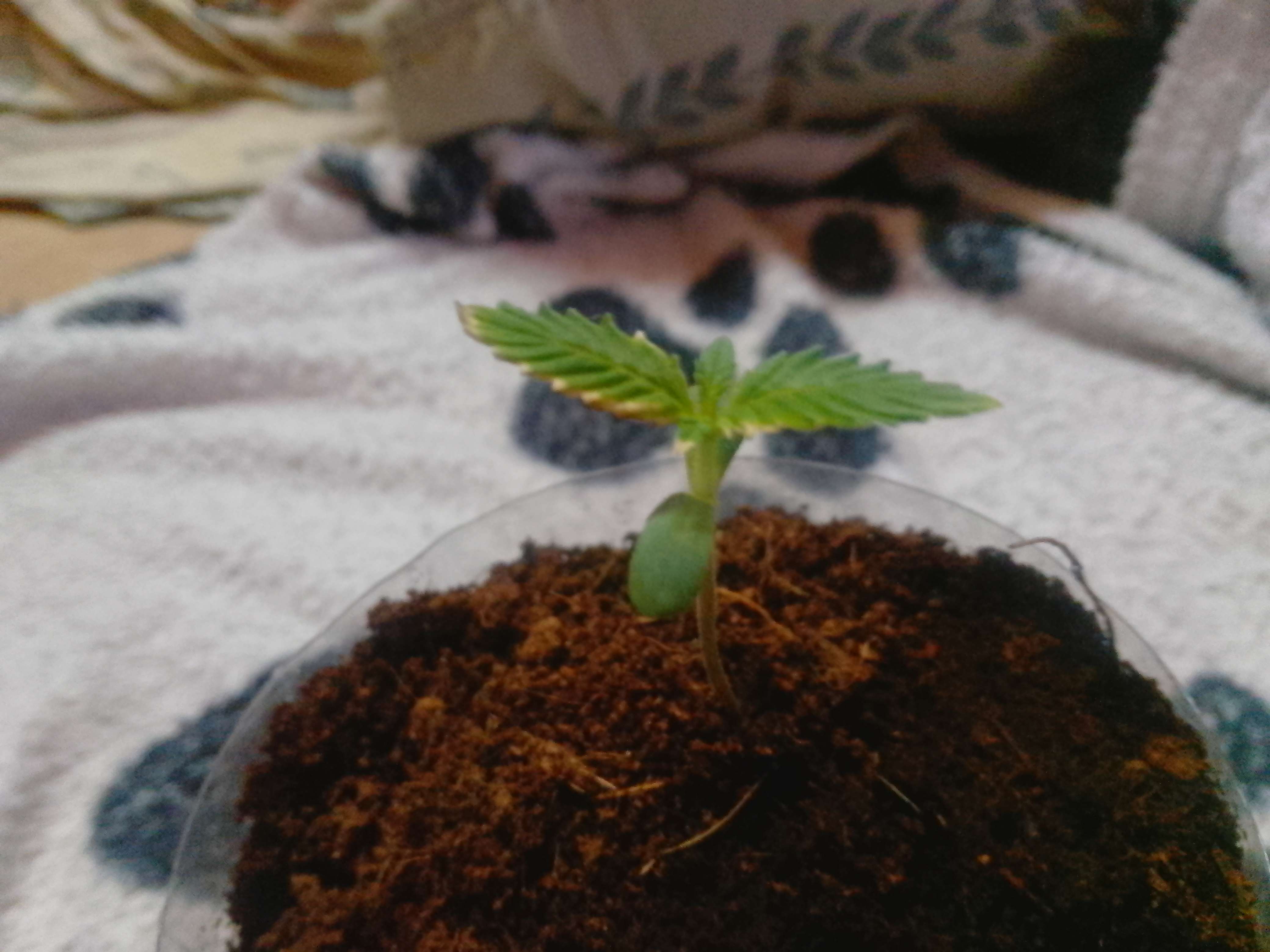 И так началось: всё с того , что мой друг детства притаранил покурить и сообщил, что данное "волшебство" можно дома вырастить без проблем . На что я, широко улыбаясь , закивал . Тут же мне были вручены 2 семечки , перекись и "чудо-лампа"(https://www.wildberries.ru/catalog/275025912/detail.aspx?targetUrl=SN). Прочитана краткая инструкция по проращиванию: рюмка + вода + 10 капель водорода и в теплое тёплое, сухое и тёмное место на сутки . Кореш сказал, что всё остальное завтра вечером притаранит с дальнейшими инструкциями . О себе : я не так давно перебрался в свой дом из кв и до этого думал , что бошки в коробке растут) то есть не разу не садовод . И вот вечер следующего дня – я смотрю в рюмку : семя утонуло и вроде треснуло я. Я корешу звонить – абонент не абонент . Я в недоумении . На следующее утро звоню опять – такая же ситуация . Я в рюмке вижу уже белый росток. Друг так на связь и не вышел(