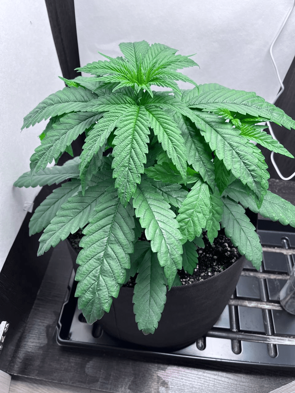 Он у тебя уже сильно оброс, уже вопрос надо ли вообще гнуть ? Можно обрезать пару листков/второстепенных кол и нагнуть раз фотик, пару дней постоит, а потом оклемается, но надо ли оно тебе, решай сам)