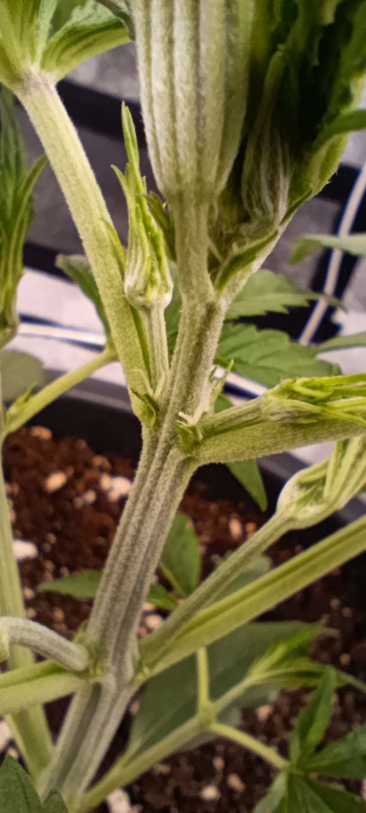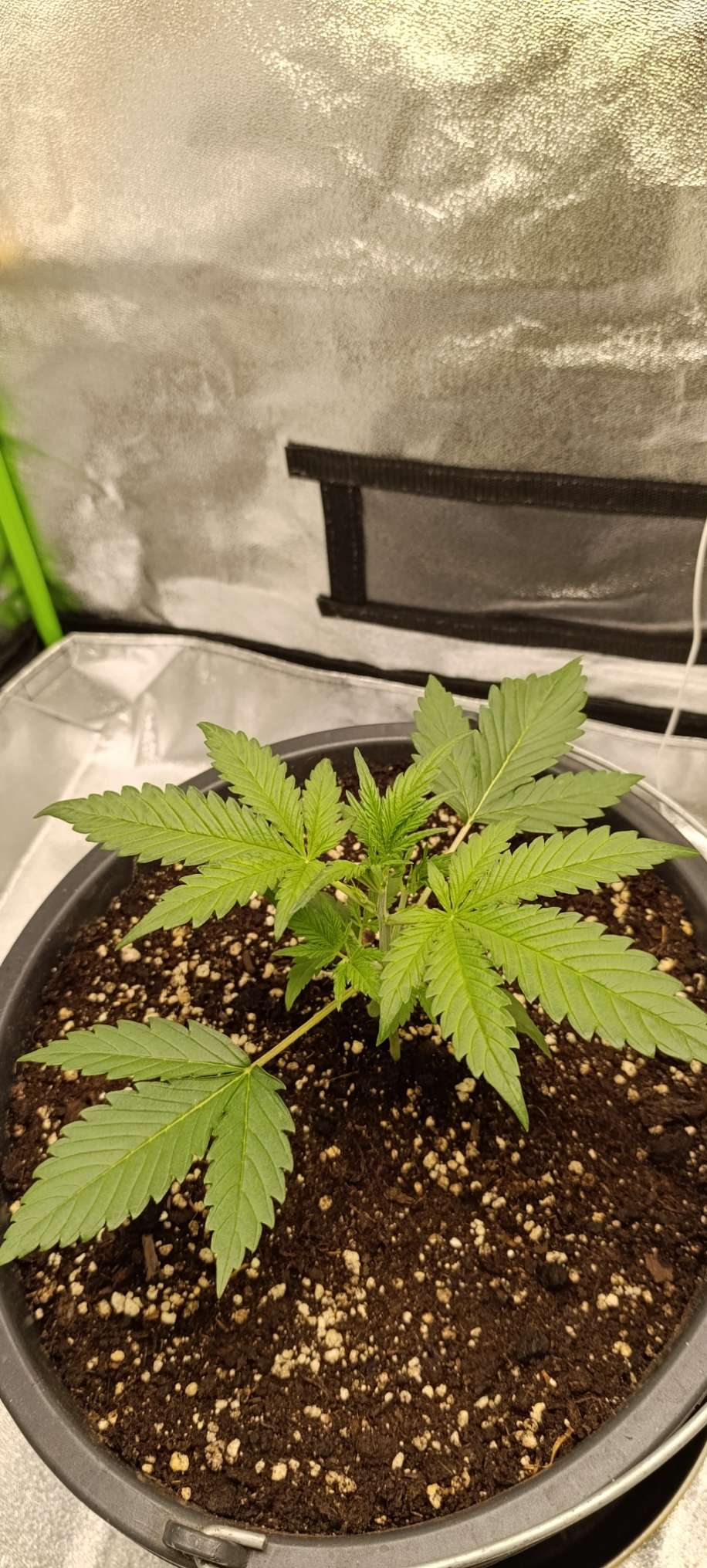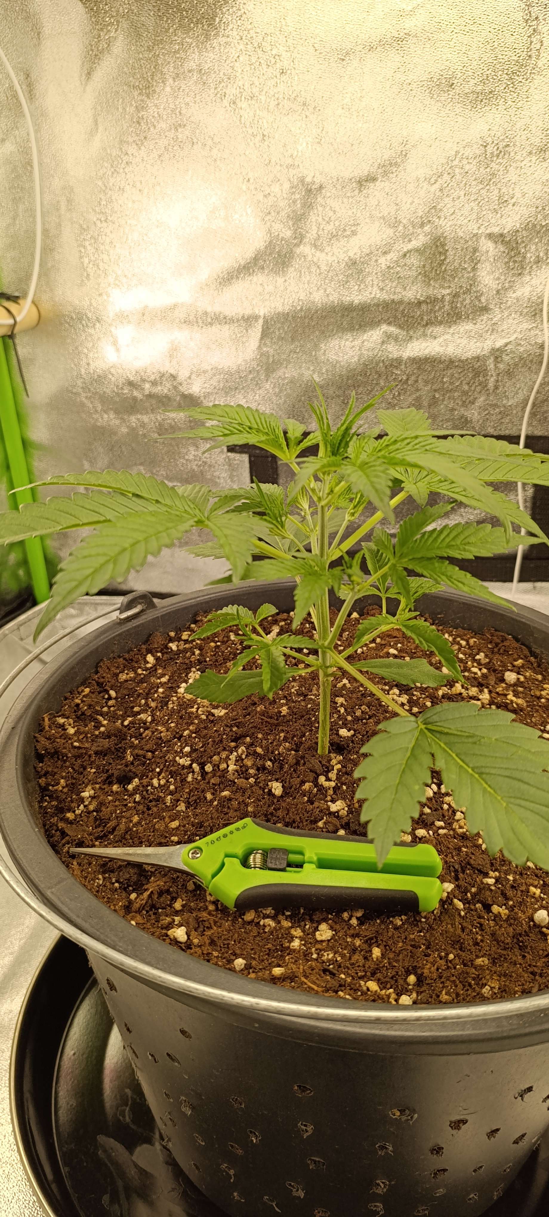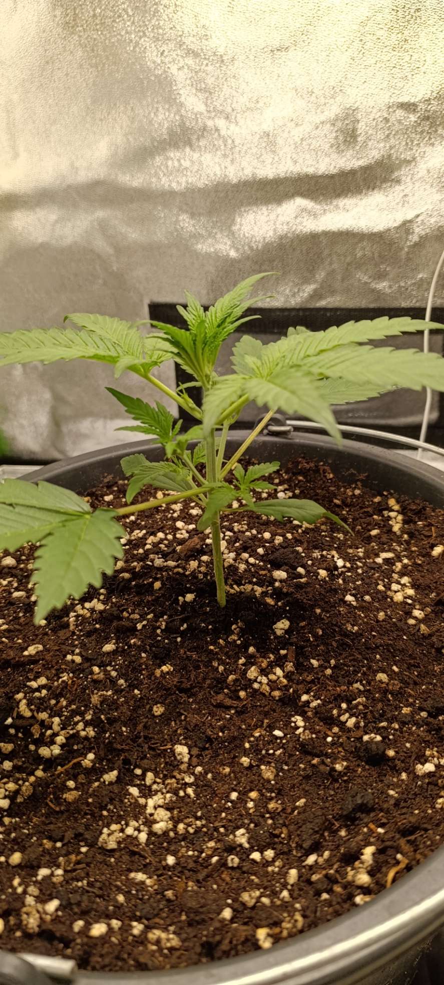 Свет 26000 Lux, полив 2,5 л. Интересная девочка. Смотрим и ахаем-охаем, какая красавица)) Наверное, высокая будет, уже думаем боковой досвет скоро включать - а то нижние уже в тени. Гнуть не собираемся, пусть растёт как ей хочется.