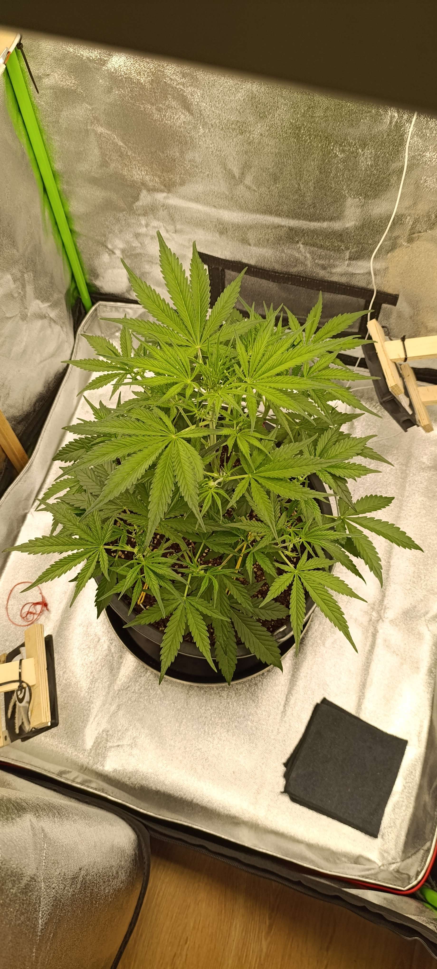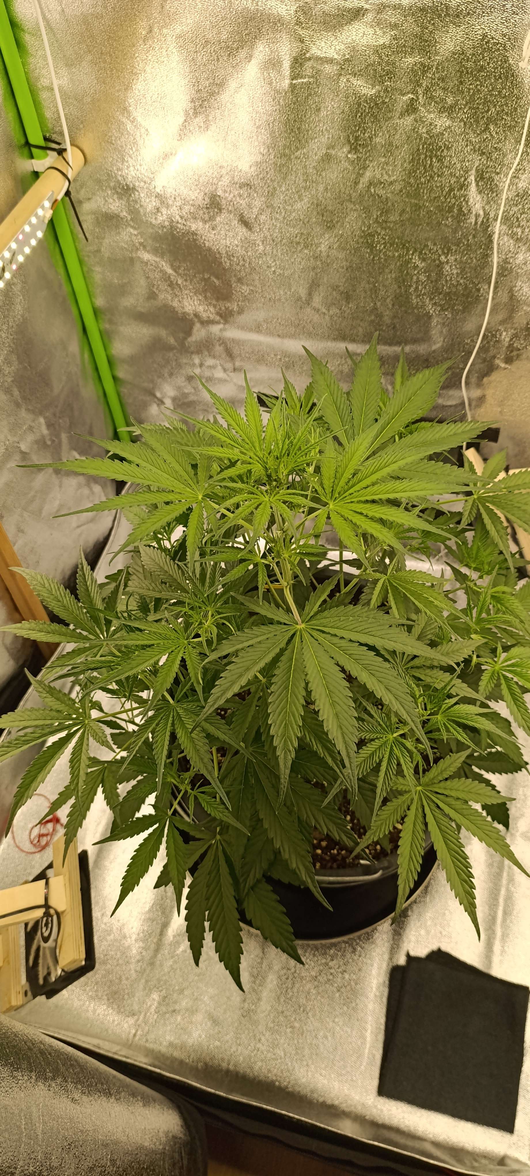 Через 24 часа горшок заметно полегчал, сделали три литра компота. Прасковья не возражала. Дренаж 100 грамм. Аппетит отменный. Свет 30000 Lux. Готовится зацвести. Следующий полив по первой неделе цветения.