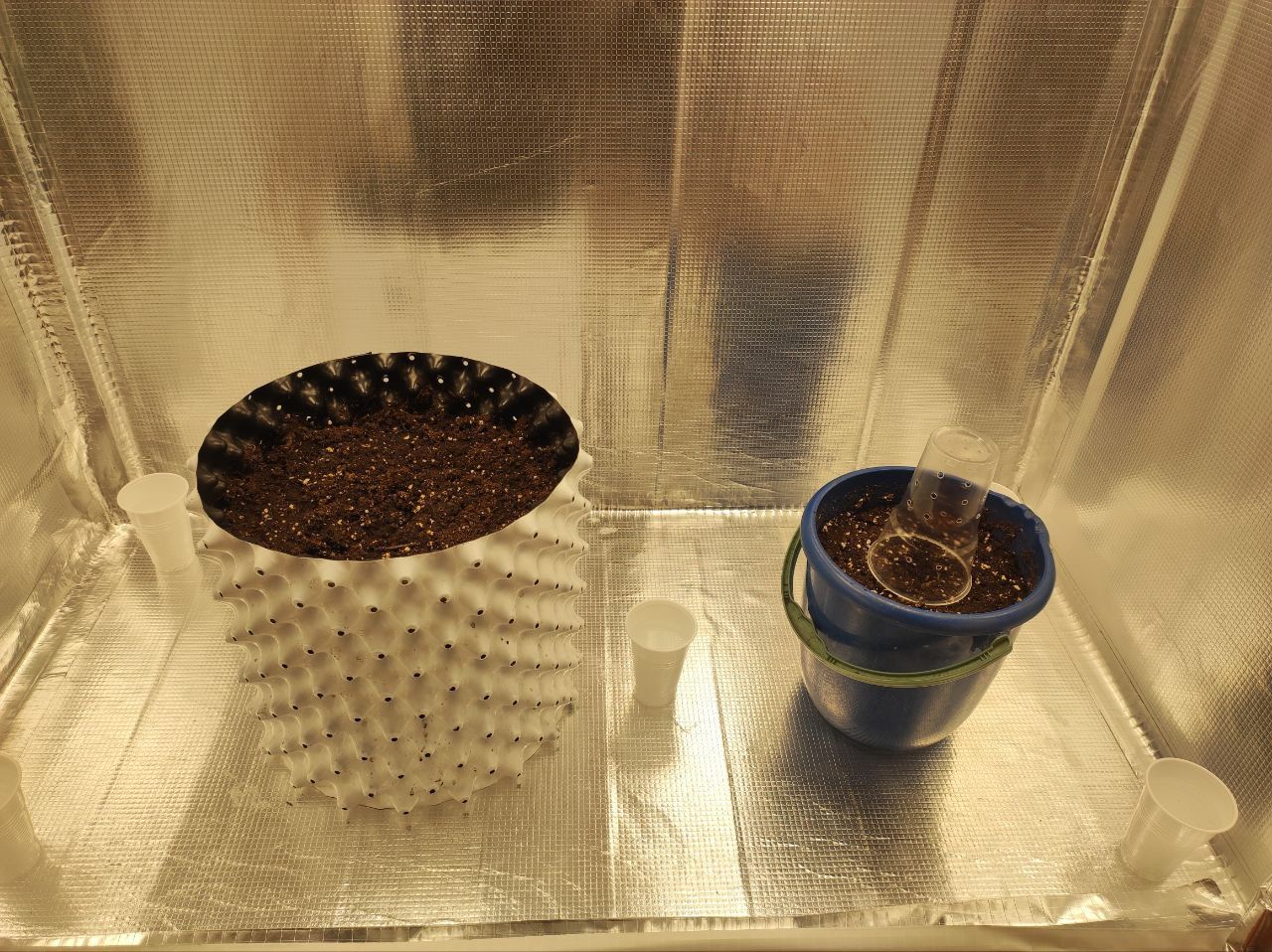 Горшок, если можно его так назвать на 6 литров ( ведро с просверлиными отверстиями на дне), уже после подумал что нужно было заказывать 2 гроу горшка по 12 литров, ну да ладно, имеем то что имеем, хороший горшок на 20 литров ждет своего хозяина рядом )