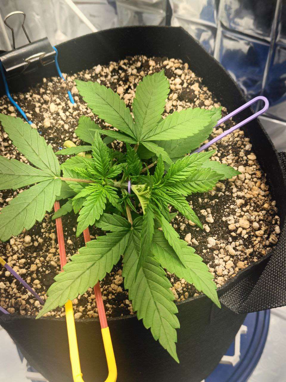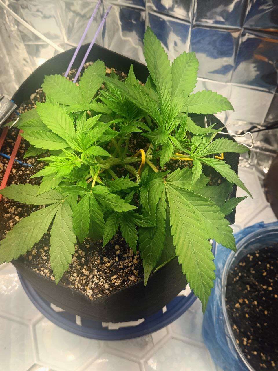16.04 (22 День) Утро подрастянул листья в стороны,у Тянки подогнул макушку чутка еще,подложил скобы под листья ,чтобы на земле не лежали,вечером пролью по 1 л,а может и чуть меньше,они за два дня только 0.5л выпивают)] Вечер Полив 1л + T.A. Fulvic 2мл/л, с дренажа правда немного но вытекло хватило замерить более менее дренаж выход 6.7 ph 950-1000 ppm