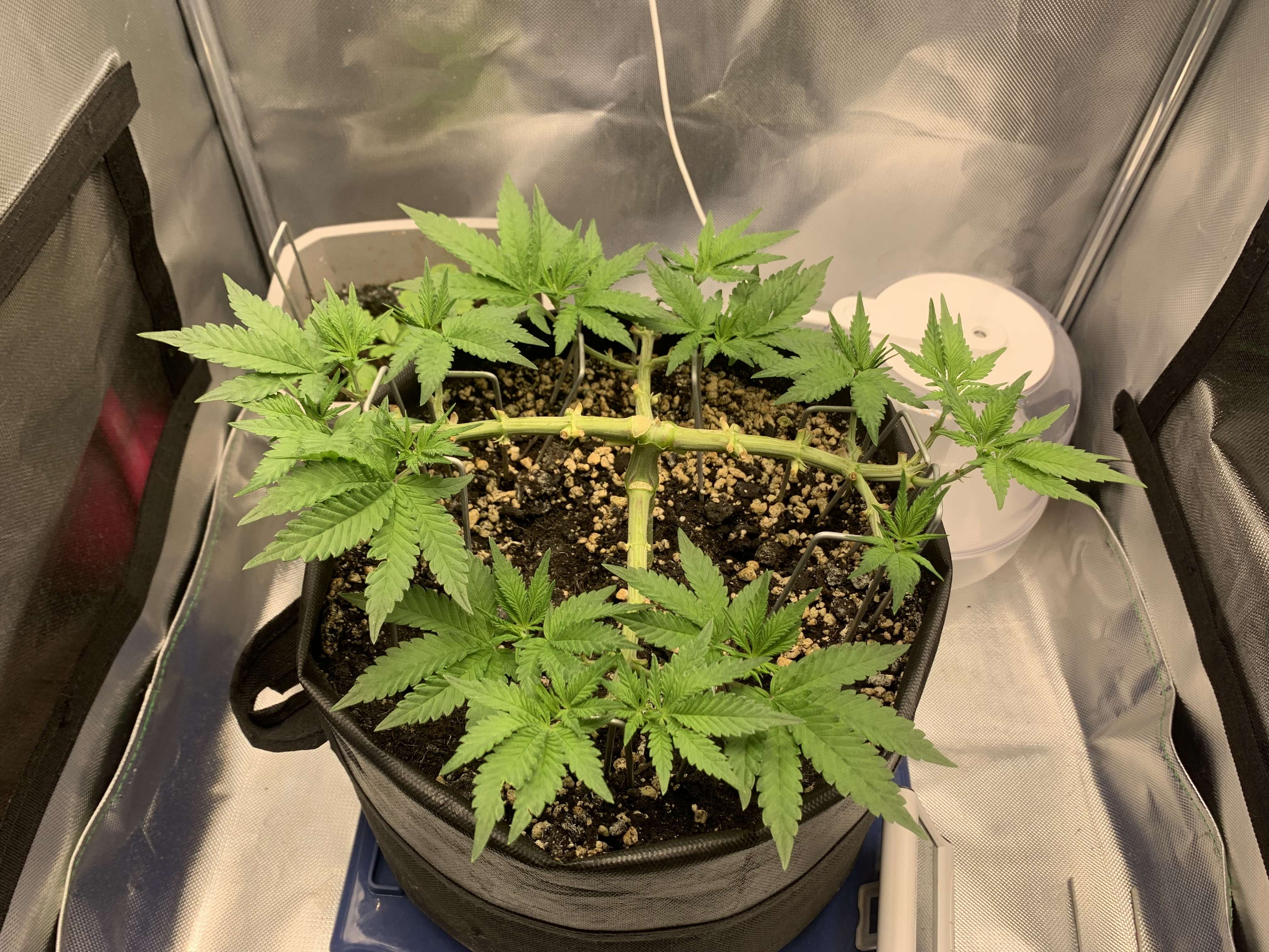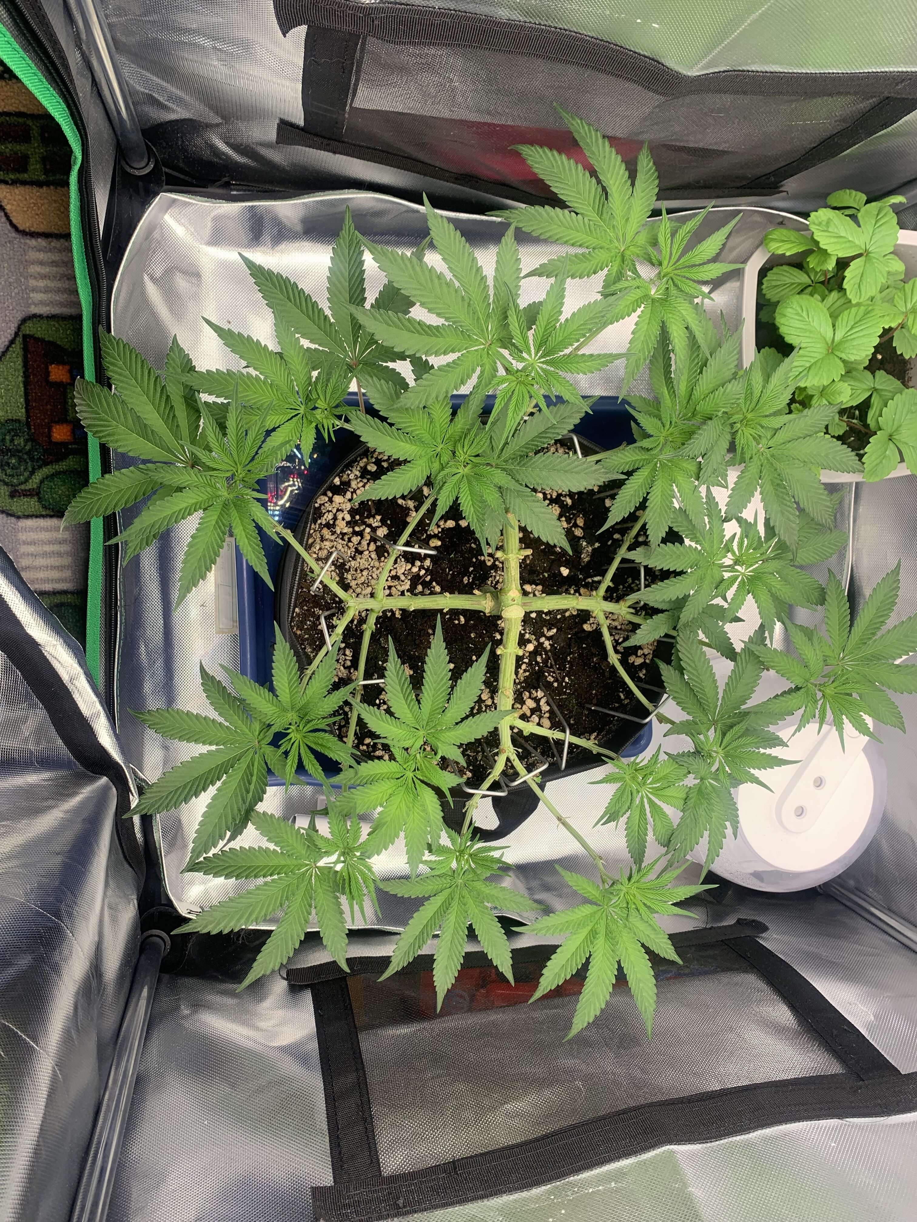 Классно ты её по всему диаметру горшока развел. Всё нормально, растёт хорошо. Сейчас будет набирать массу, так же продолжай проливать на вегу удобряхи. Скоро предцвет начнёт появляться 😉.