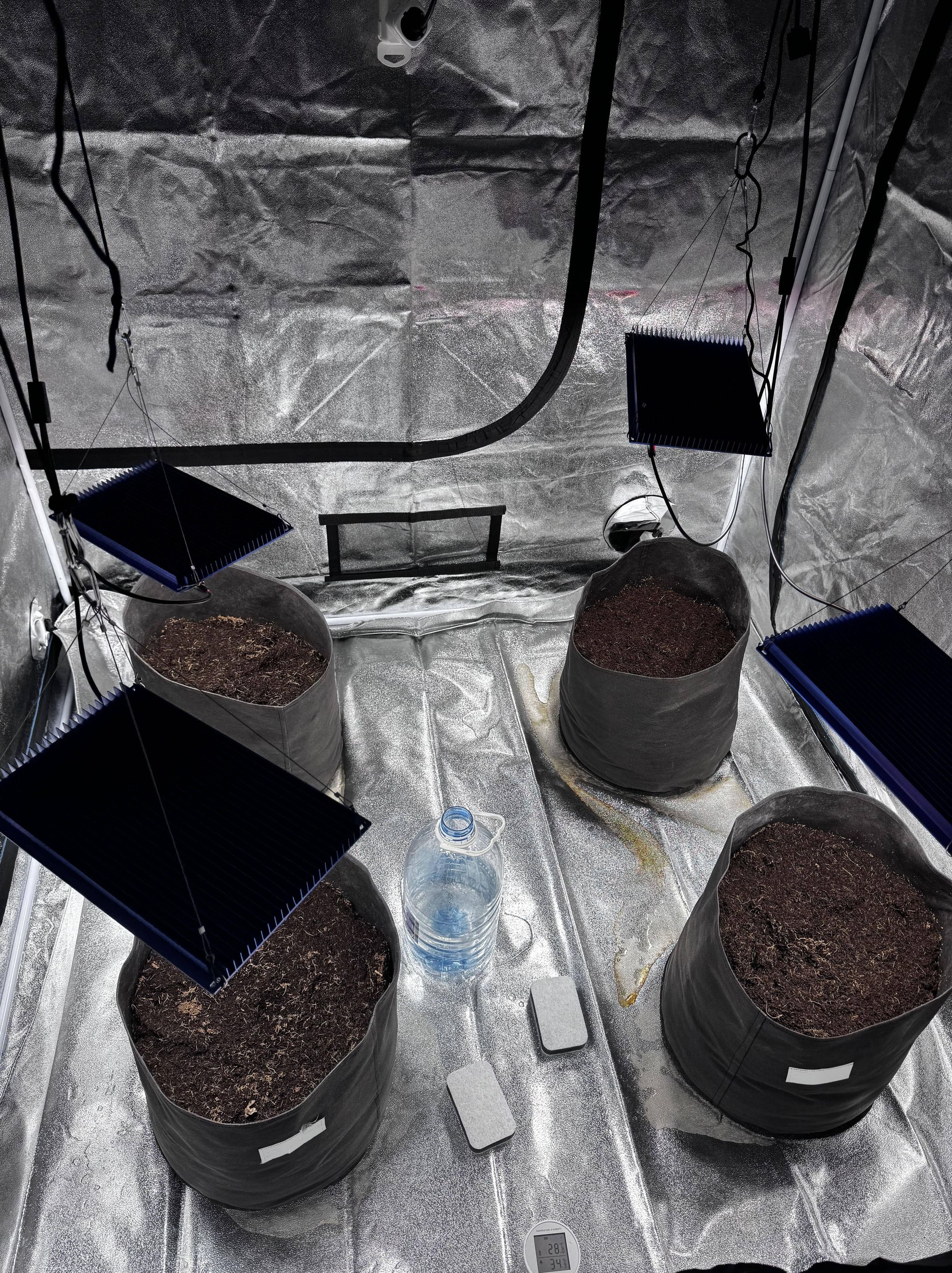 кокос проливал за 3 дня до посева, горшки по 25л, на каждый по 5л водички с 10ml CalMag и 5ml root power. ph воды 5.5-5.8