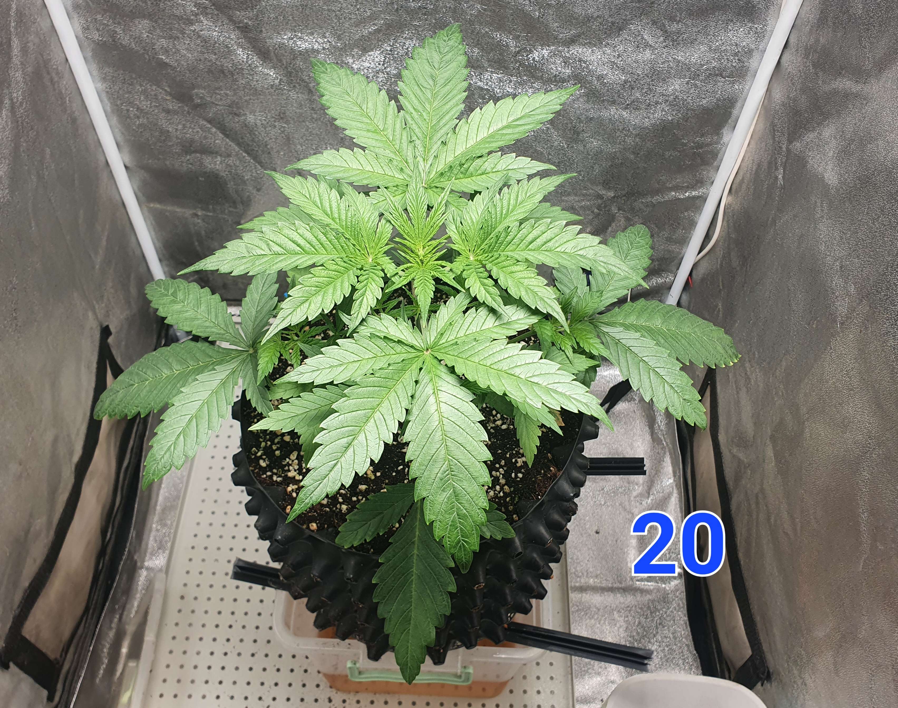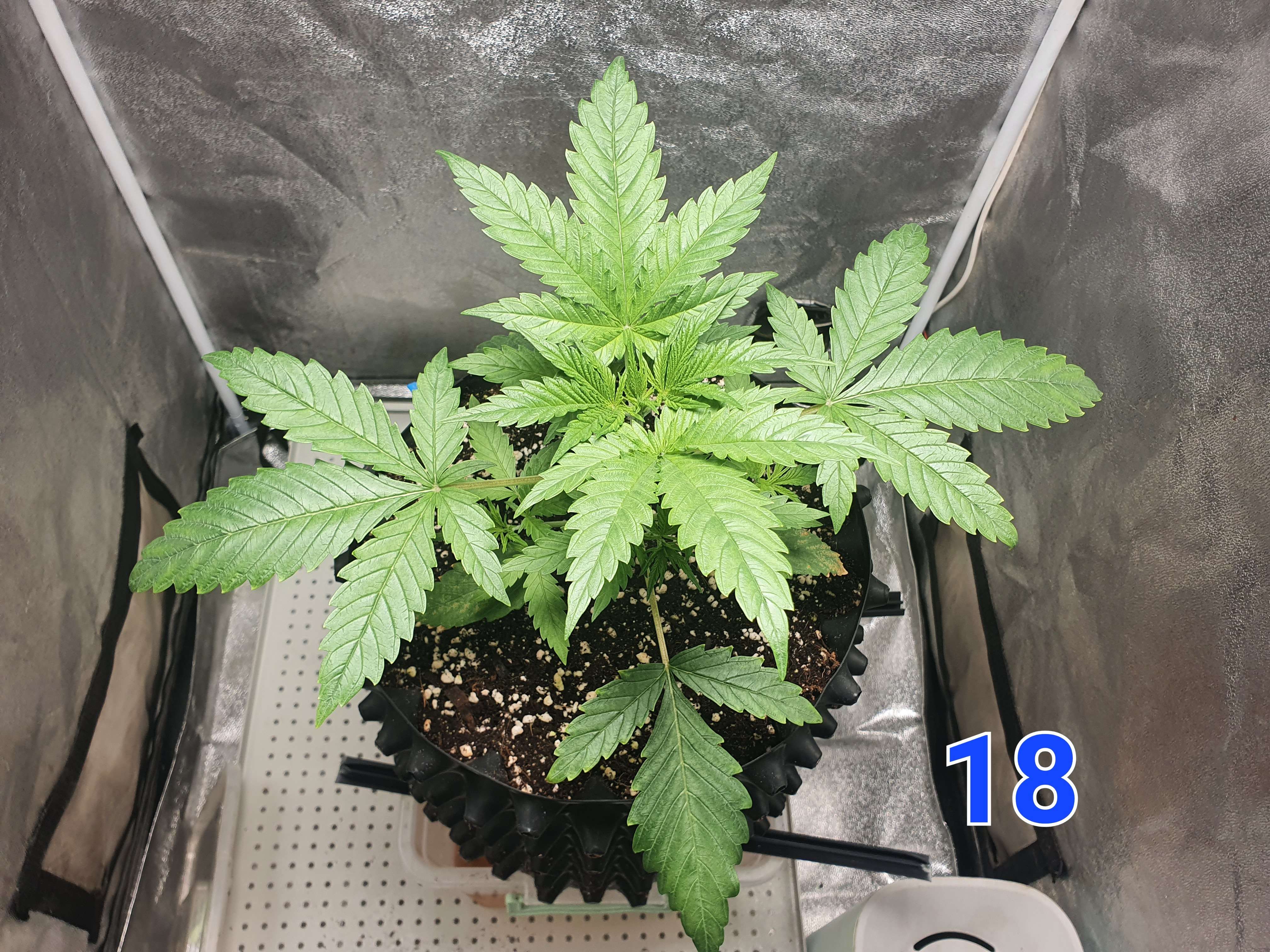 Выглядит просто восхитительно, так и должен выглядеть каннабис на 17 дне, никакого стресса- и вот какие темпы роста, у кого то третий этаж только набивается на этом этапе. Тут и тренировки можно делать, растишка то окрепла и уже может справиться со стрессом- ресурс есть, но совсем другое дело насиловать еще неокрепшую растишку- там и тормоза пойдут, так что тренировки самое главное знать когда применять. Одним словом браво
