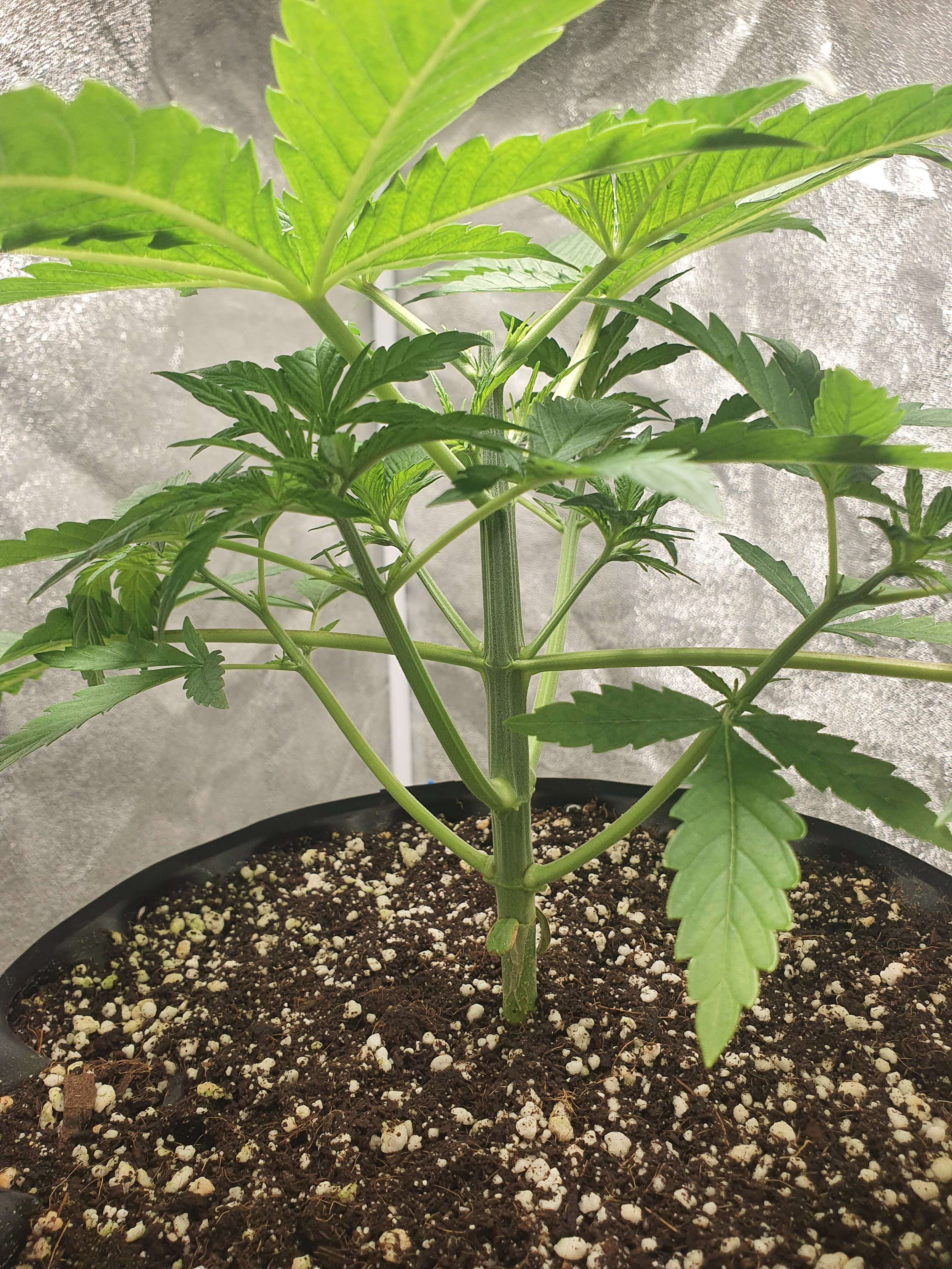 На 20м дне снёс макушку оставив 5 этажей. Первый этаж трогать не стал, ибо хорошо развивается. Так же убрал первых нижних 4 листа. После этого дал по листу стима grow от simplex.