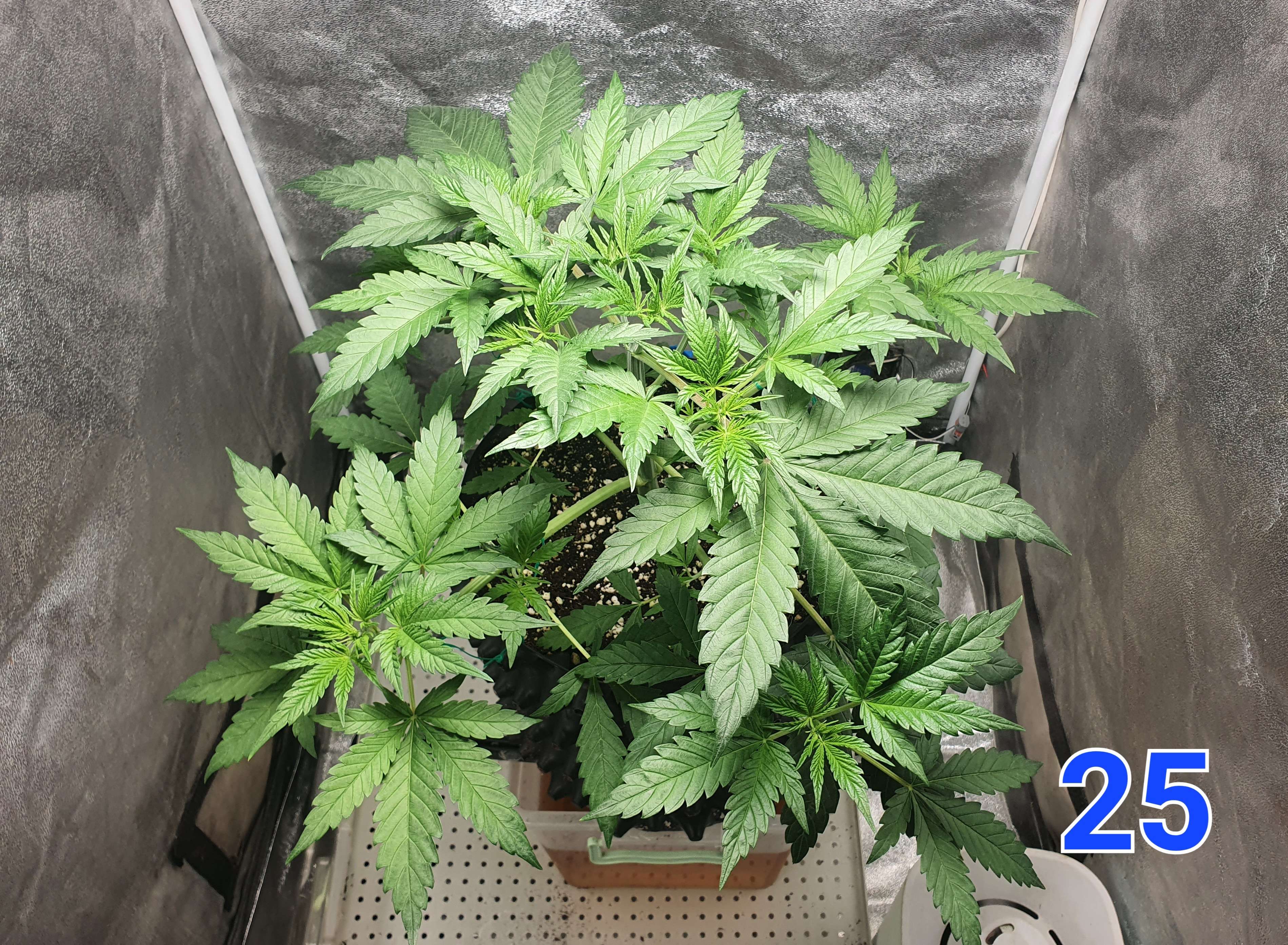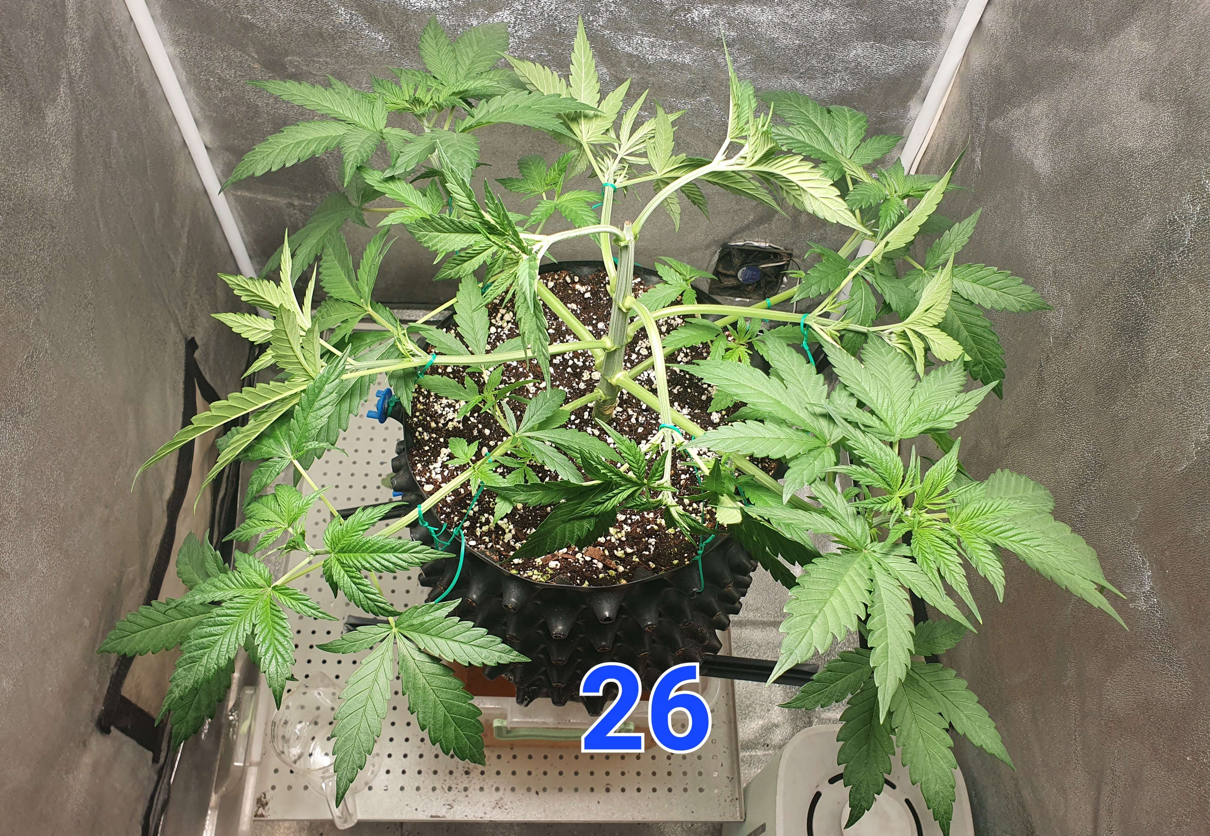 На 24й день растянул первые два этажа растишки и убрал 2 лопуха. Те этажи что выше буду тянуть когда вырастут сильнее.