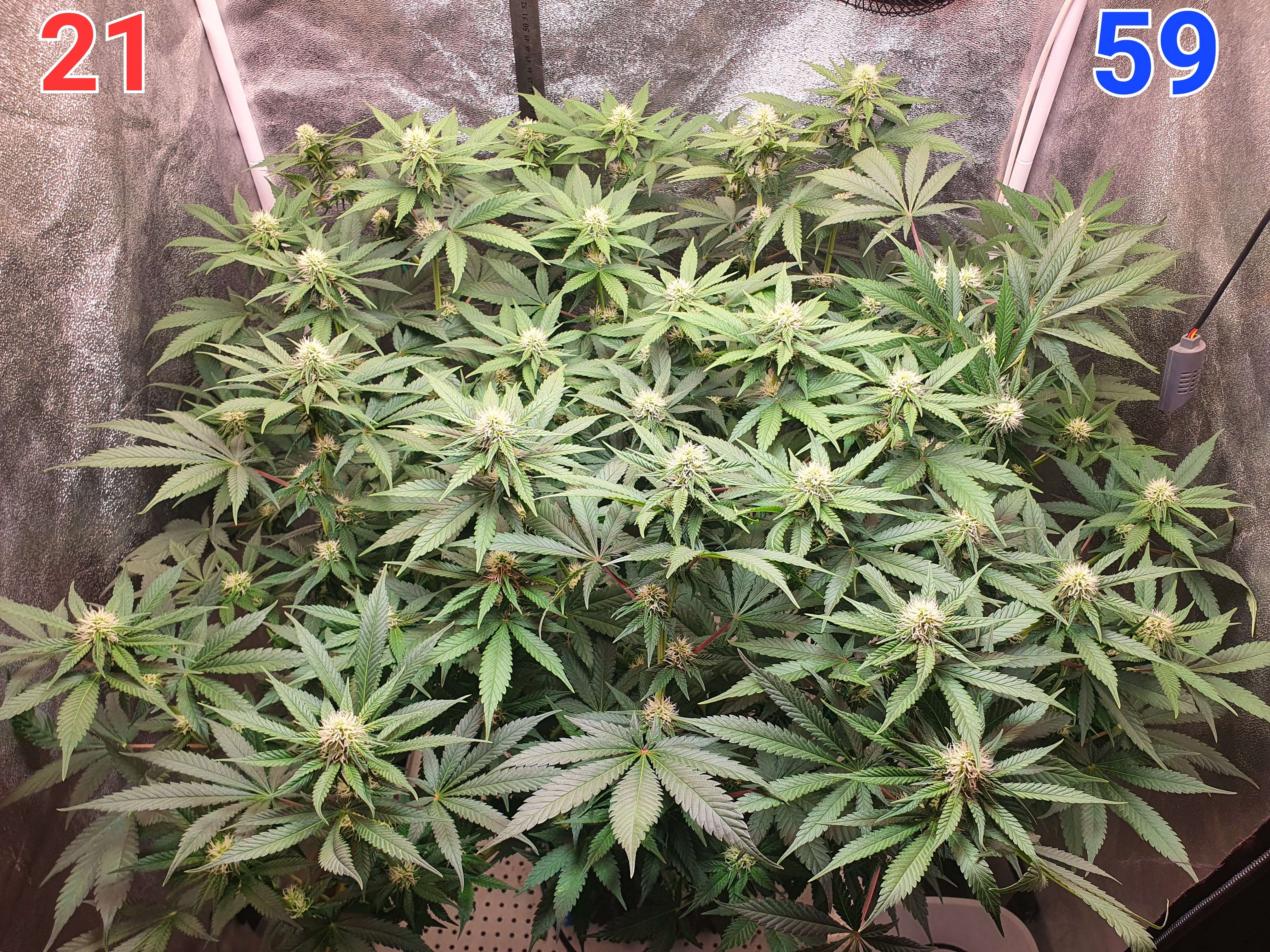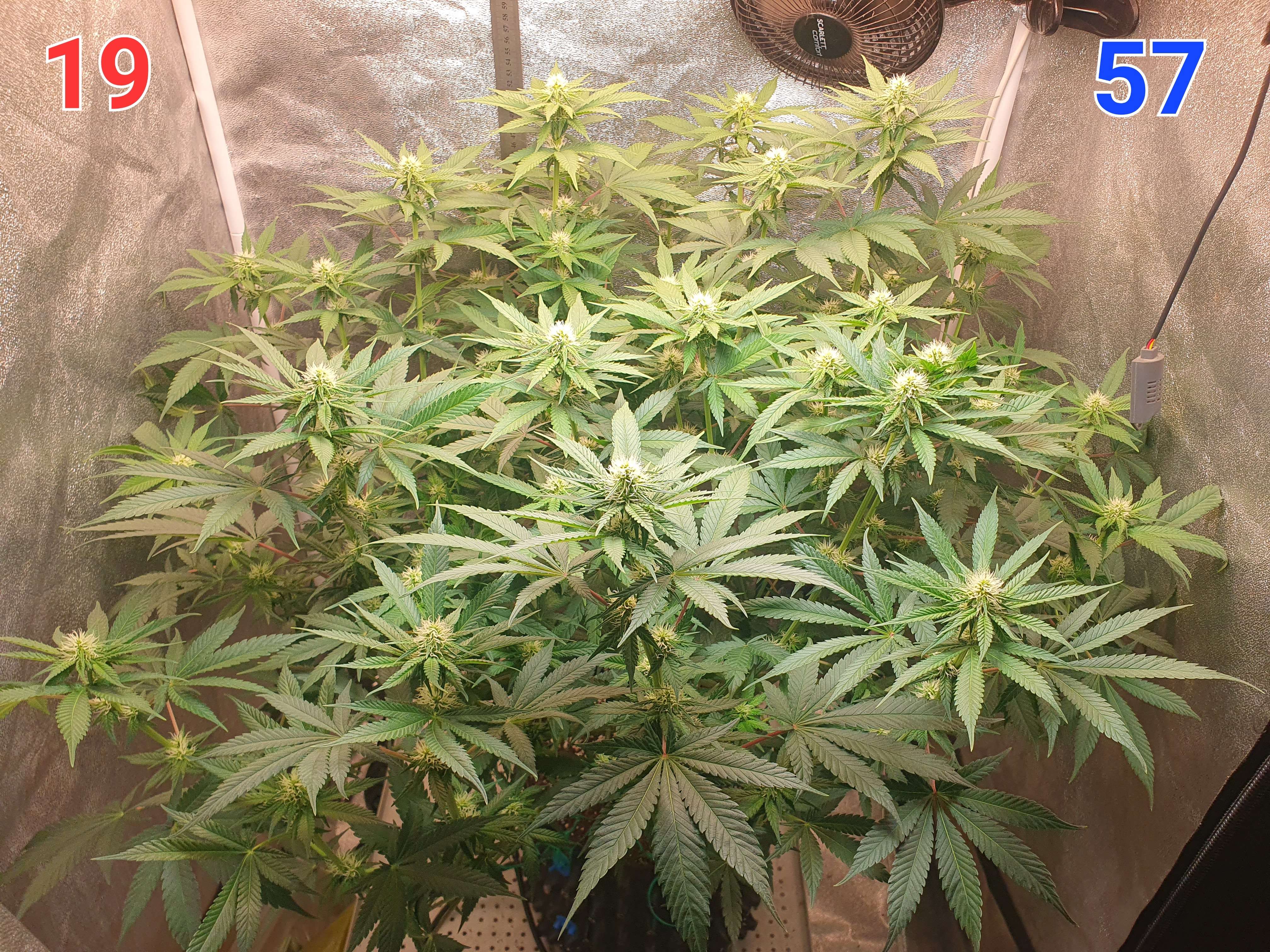 На этой неделе решил потренить куст, на 57й день. Убрал низа, чутка лопухов и растянул. В течении недели сформирую финальный вид куста. После тренировки дал по листу Simplex vitas, посмотрим на реакцию.