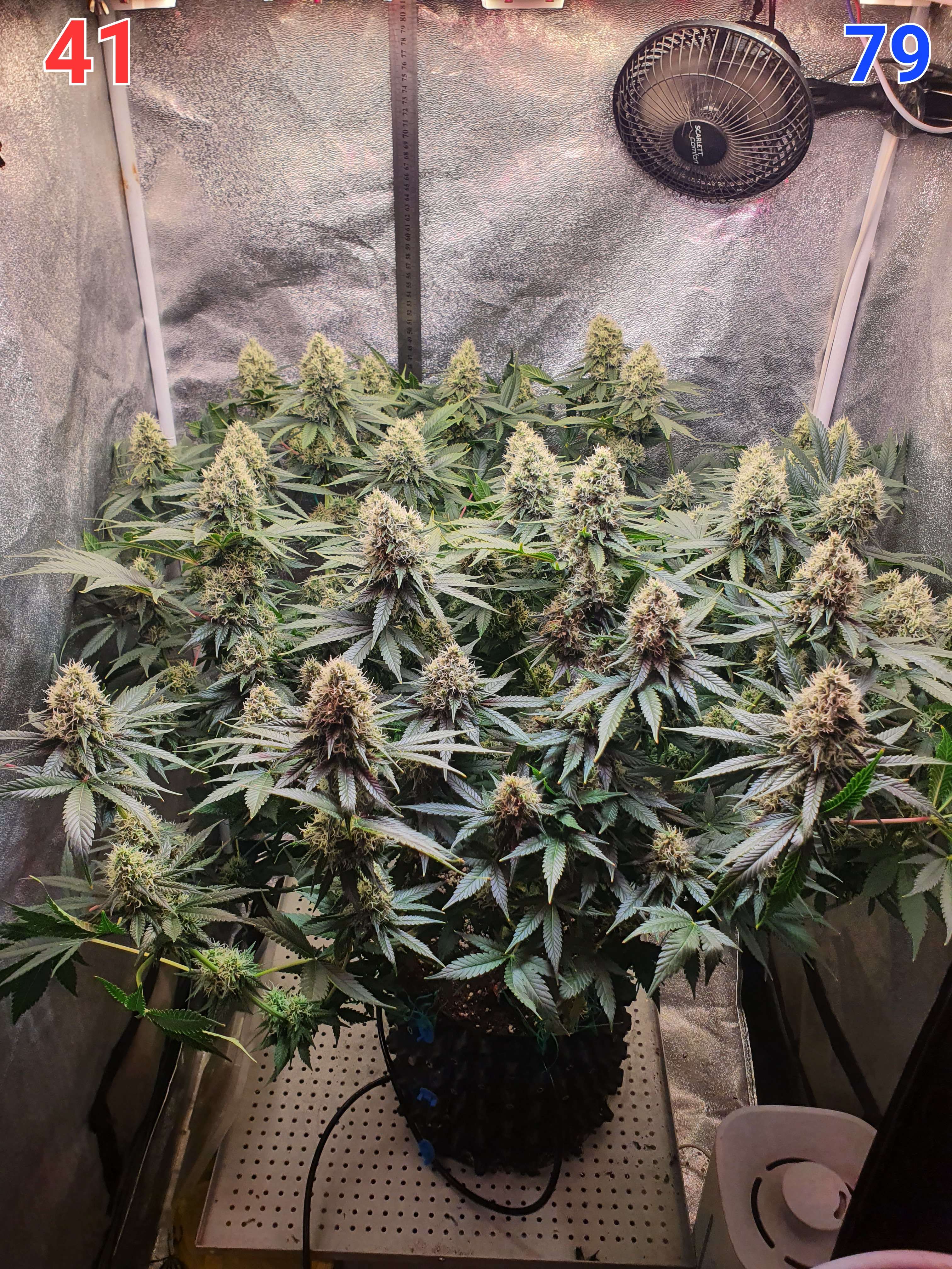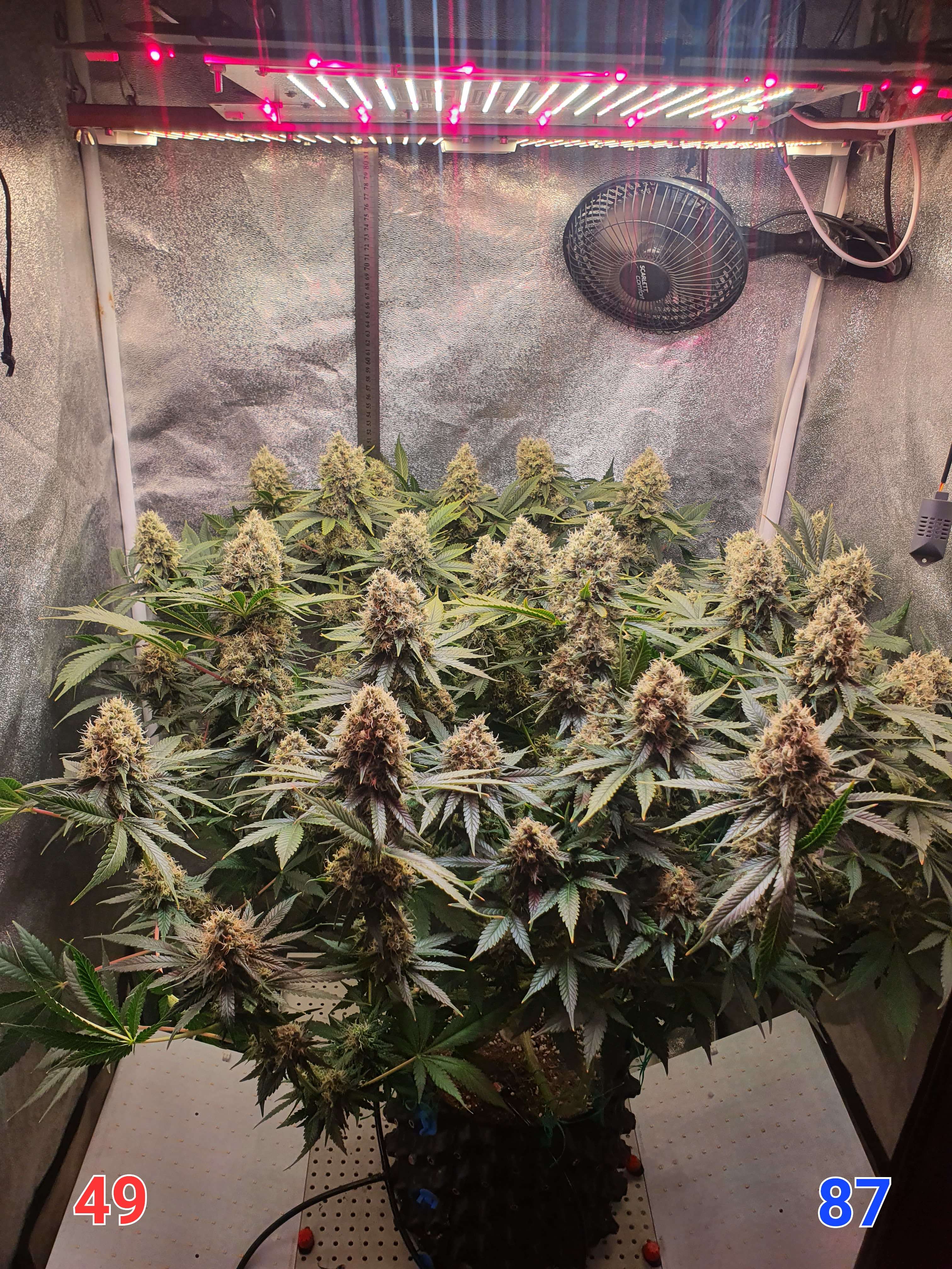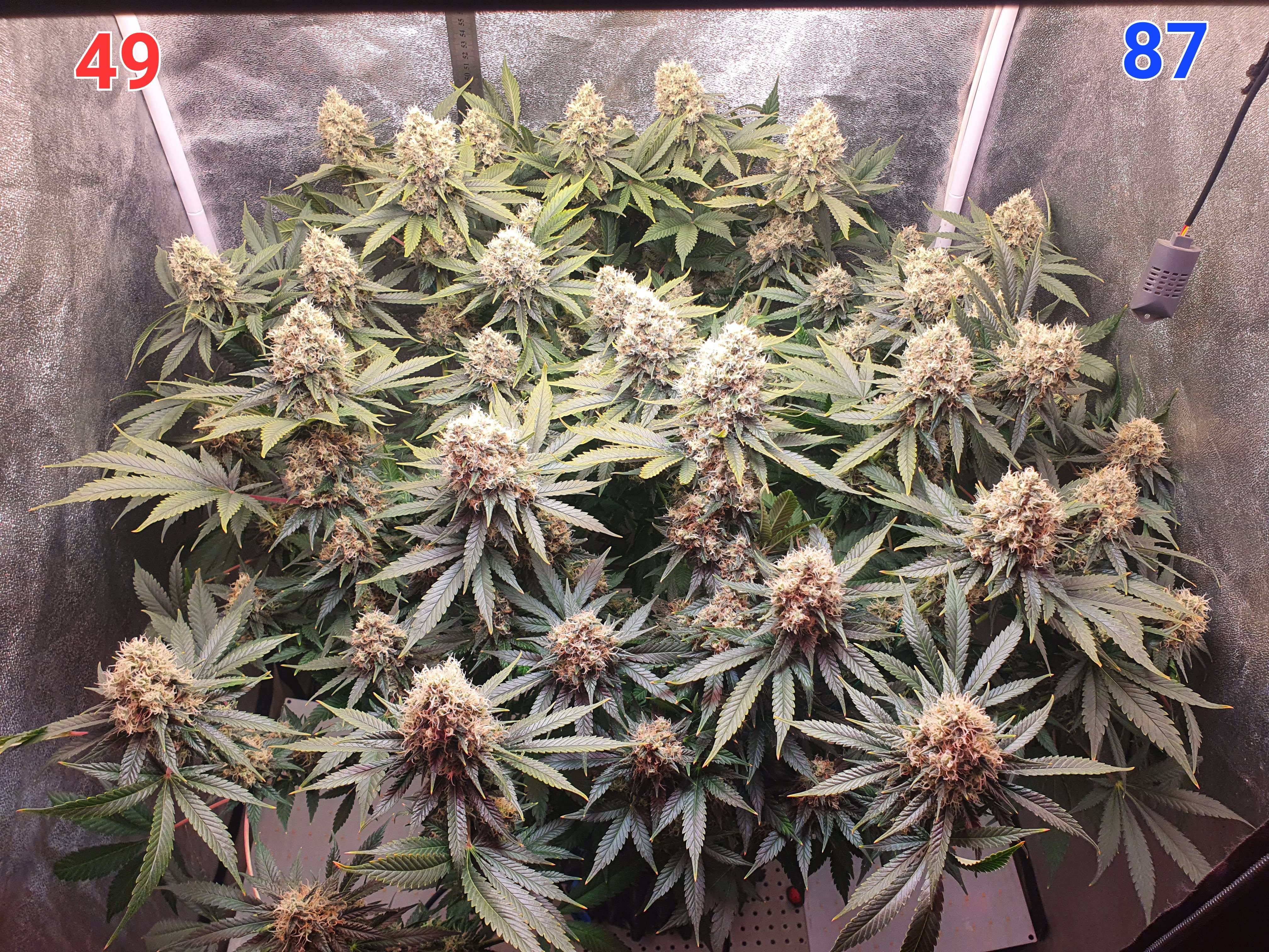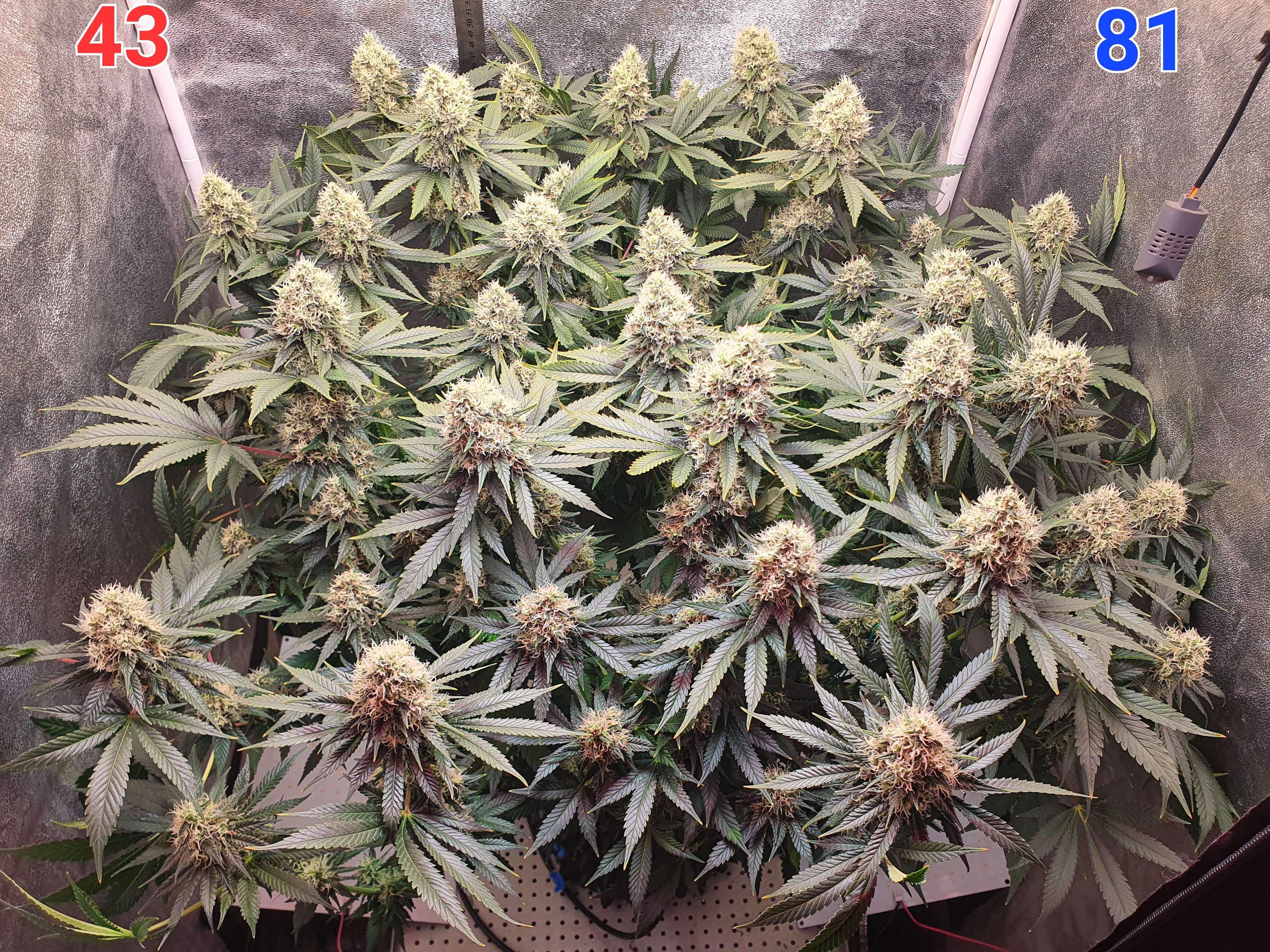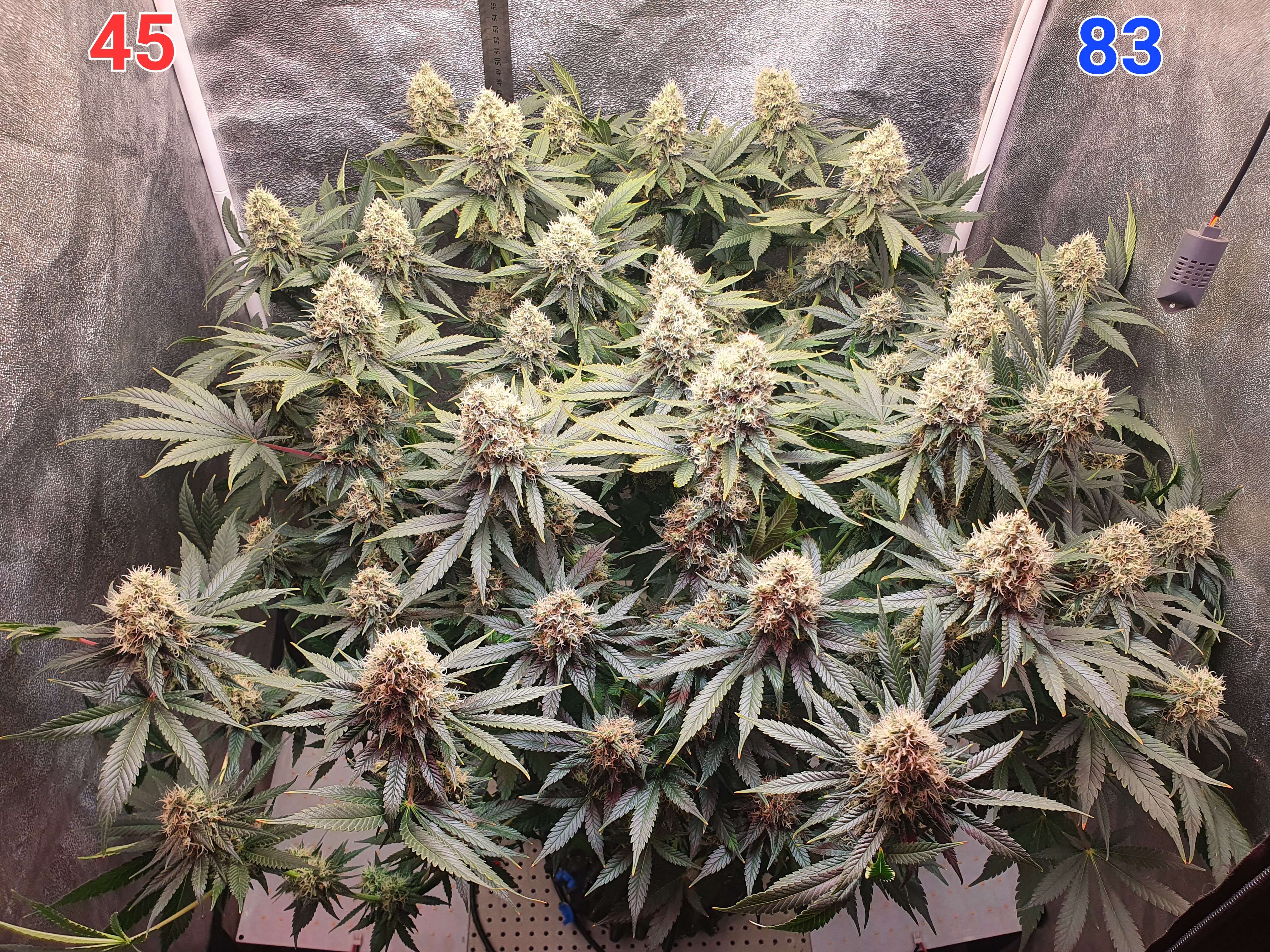 На этой неделе питание у нас меняется, растишка прошла период фосфорного окна и сейчас переходит в стадию затухания, соответственно меняю схему кормления и начинаю уменьшать интенсивность света. Больше никаких тренировок у куста не будет, ещё чутка зачищу от листвы и подсоберу куст в кучку (а то некоторые боковые колы начали заваливаться).