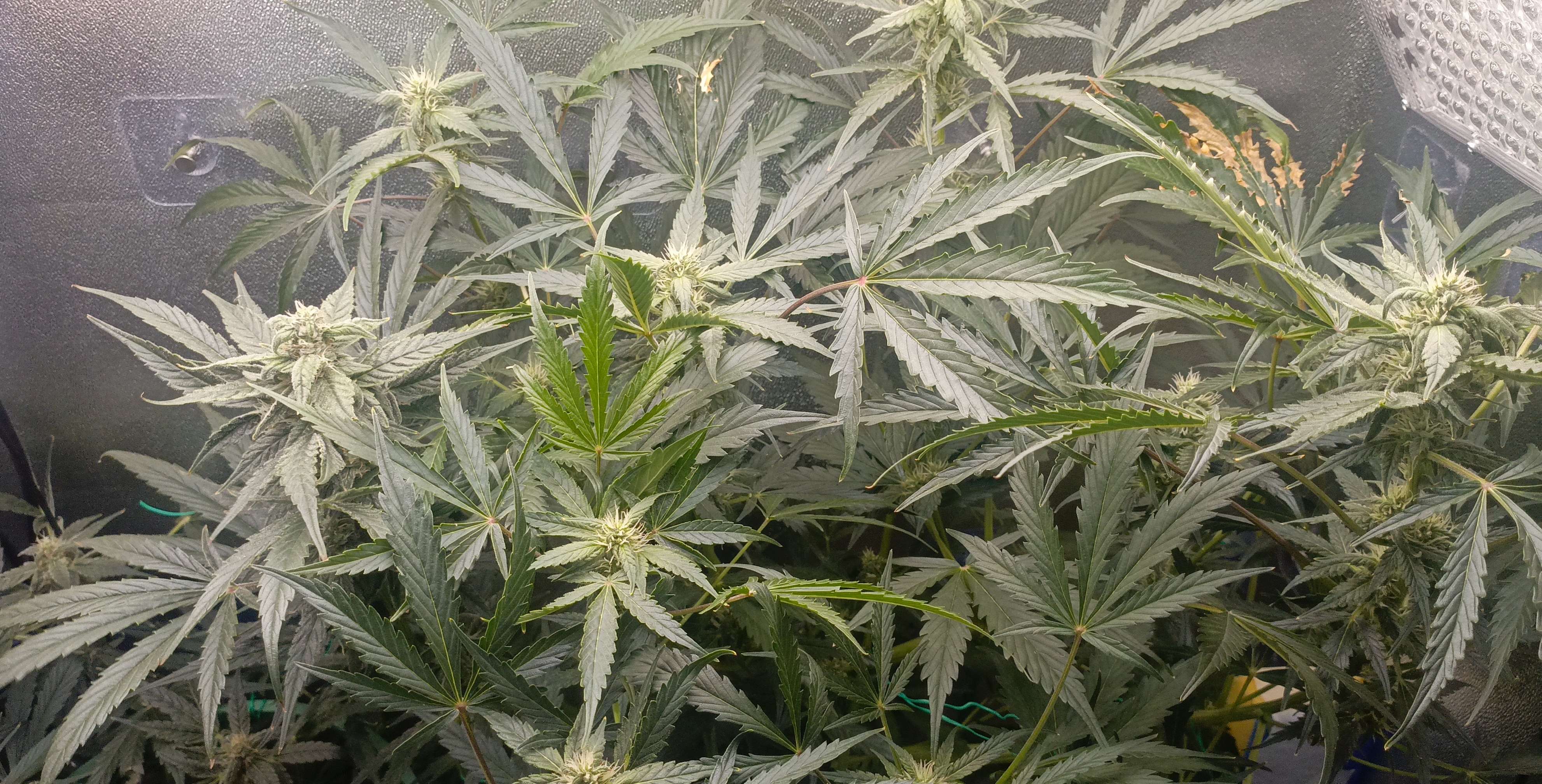 Итак рост к этому времени совсем остановился, шишки набирают массу. Т.к у меня система сдвоенная AquaPot duo, ориентир на созревание буду производить по одной растишки вторая сколько успеет, но везде идет рост соцветий и всё покрывается трихомами.