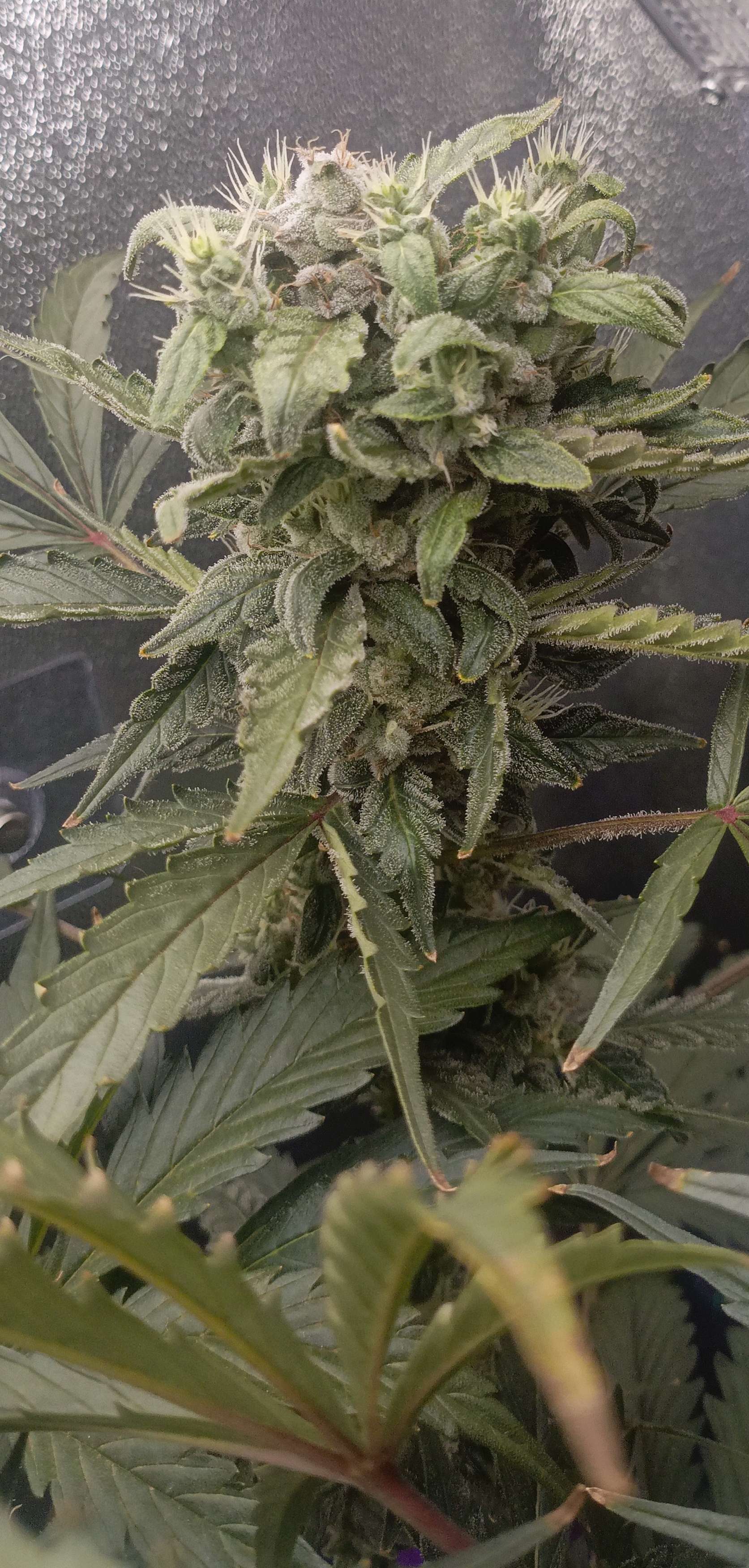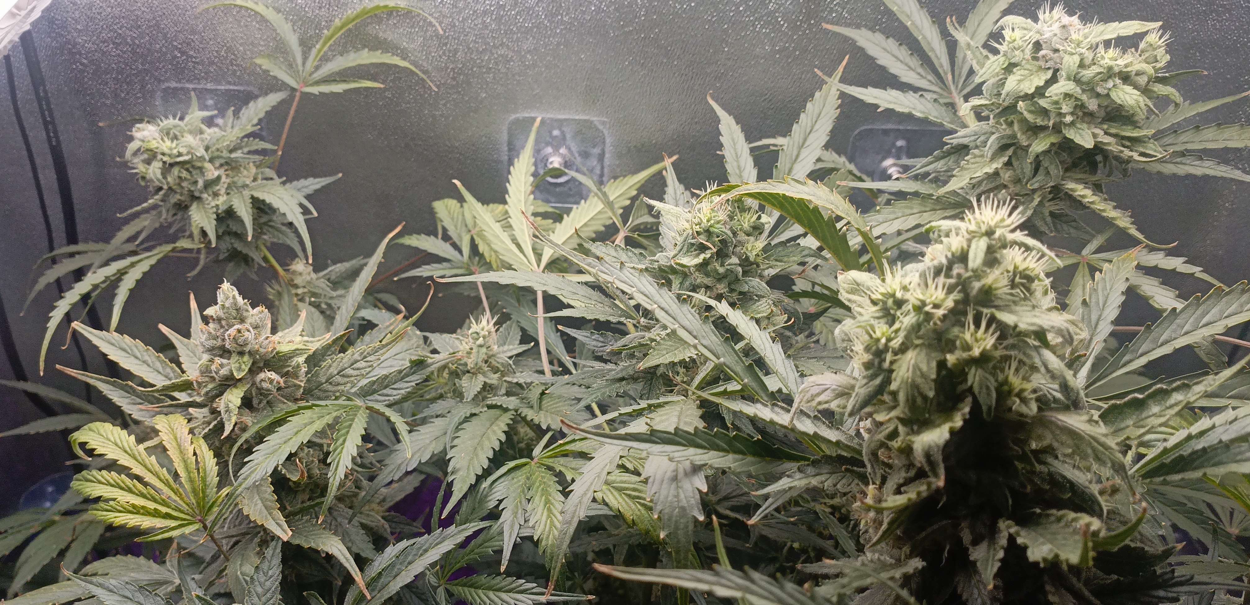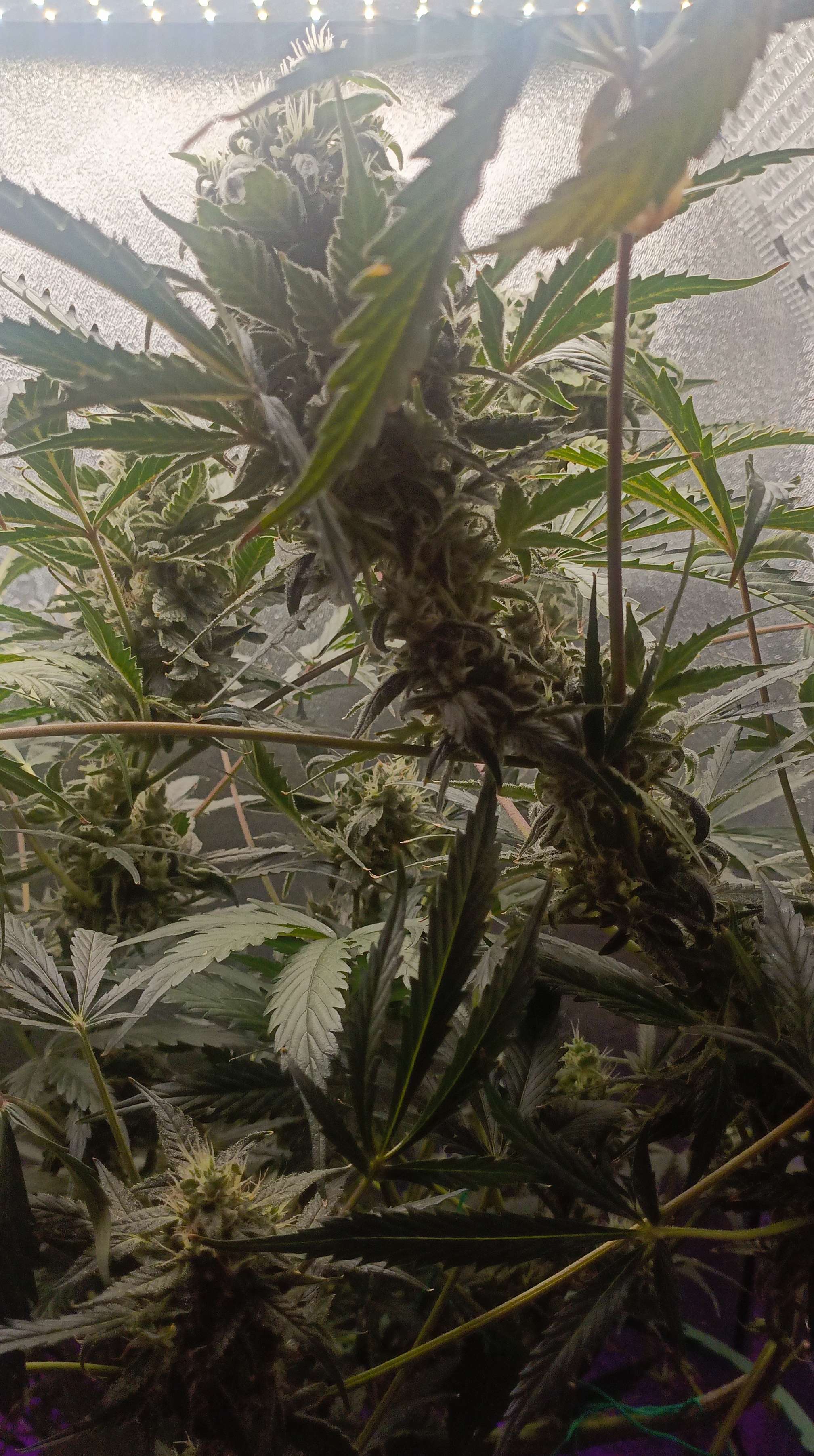 Изменил немножко концентрацию удобрений, эта неделя последняя, дальше 10 дней рипен, промывка и два дня темноты. Шишки растут в объёме, некоторые ветки гнутся под тяжестью бошек приходится подвязывать. Так же понемногу нижние соцветия удаляю, чтобы весь потенциал роста был сверху.