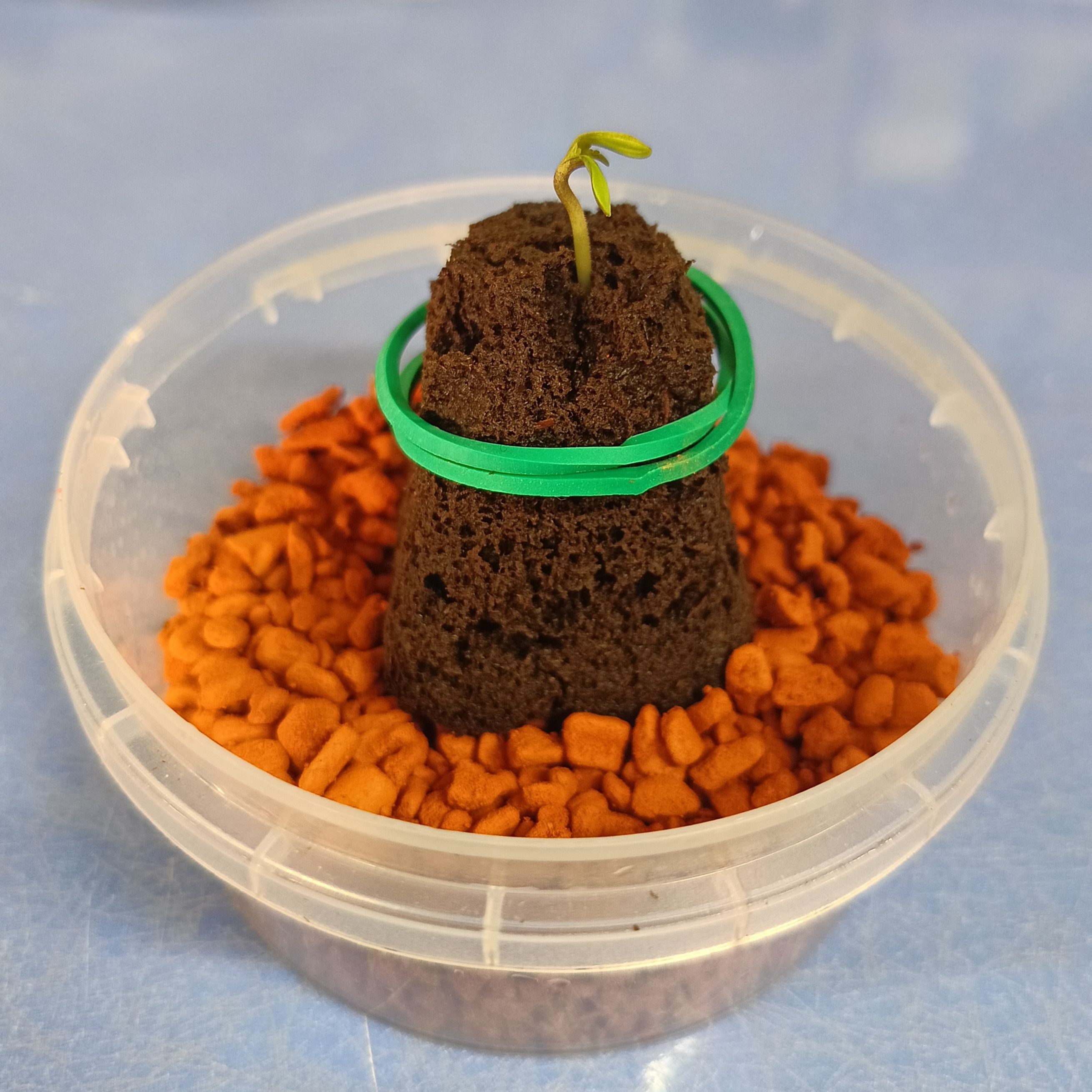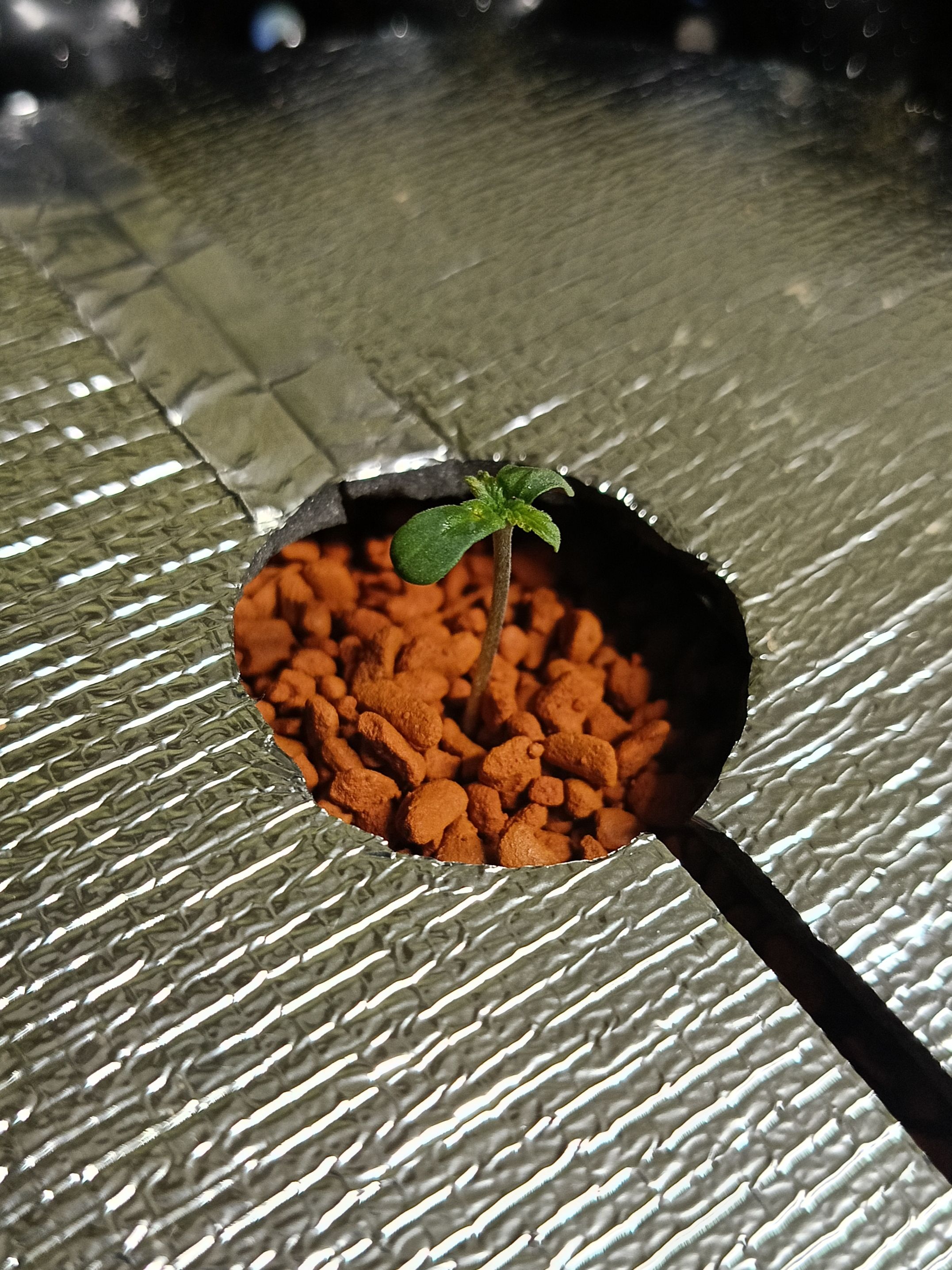 Семку замочил в рюмке осмоса с добавлением перекиси на 10 часов, затем в кубик Root Riot, острой стороной ореха вниз. И, спустя чуть больше двух суток росток показался на свет.