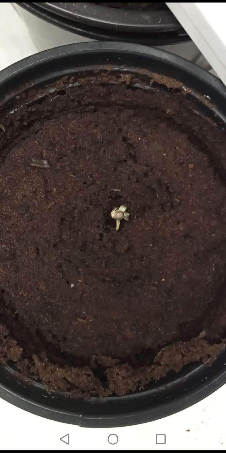 Ещё через сутки подопечный показал относительно небольшой корешок (маленький, крепкий корешок таящий в себе большой потенциал) и был посажен в горшочек 0,5л с дренажом 2см (пенопласт) случайно попадая под лунный календарь, да