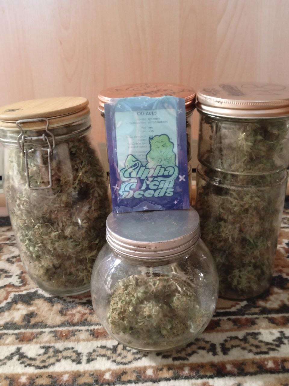 Итог:2 Альфа ОГ от альфа фем, первый получился совсем не очень возможно генетика , так ка при его рождении он дал 3 семядоли и отсутствовал 1 этаж, но я его вытянул. Вторая девочка развивалась без проблем которая принесла порядка 180 сухого за 90 дней, очень убойных Оуджи шишек.