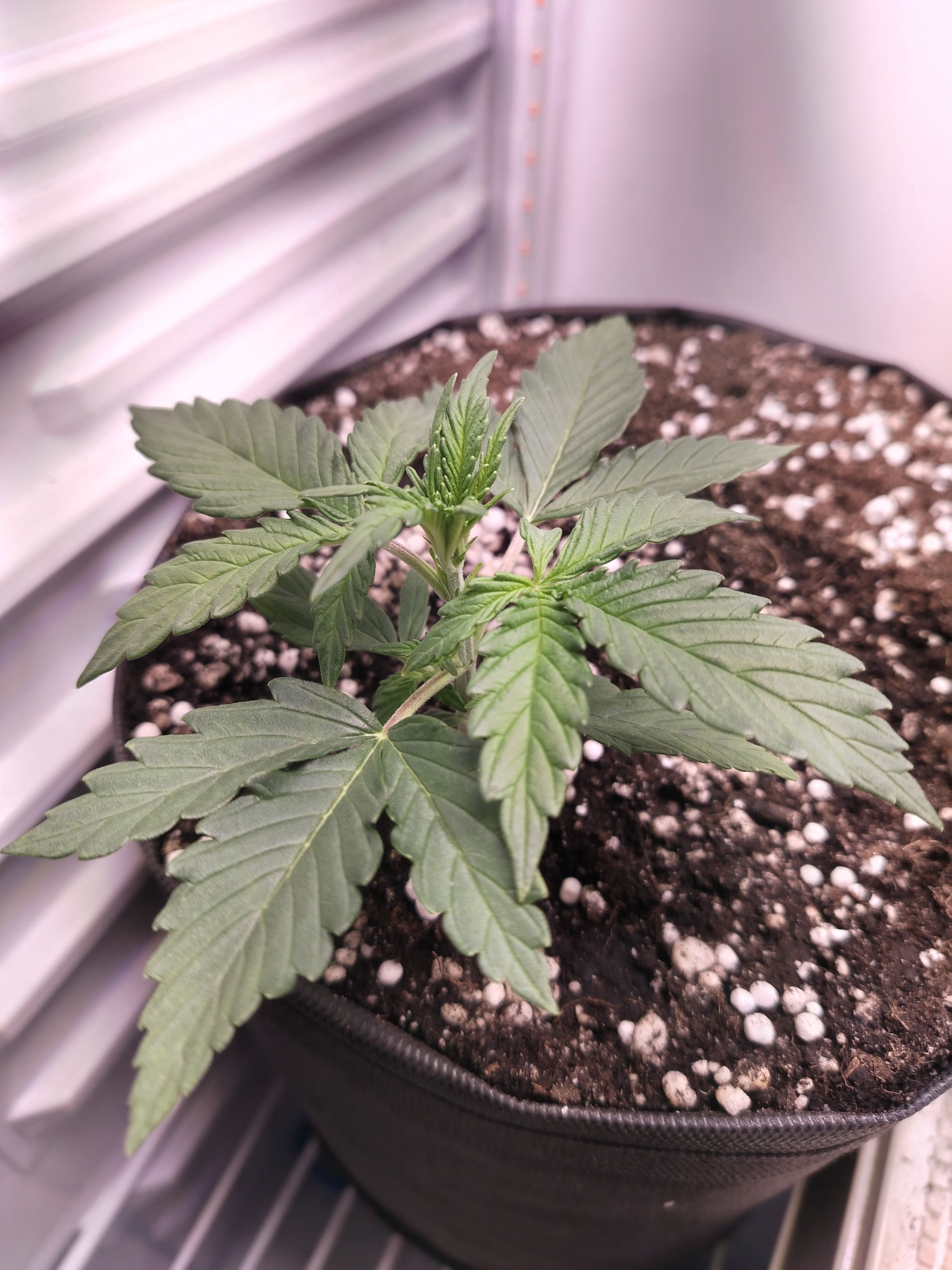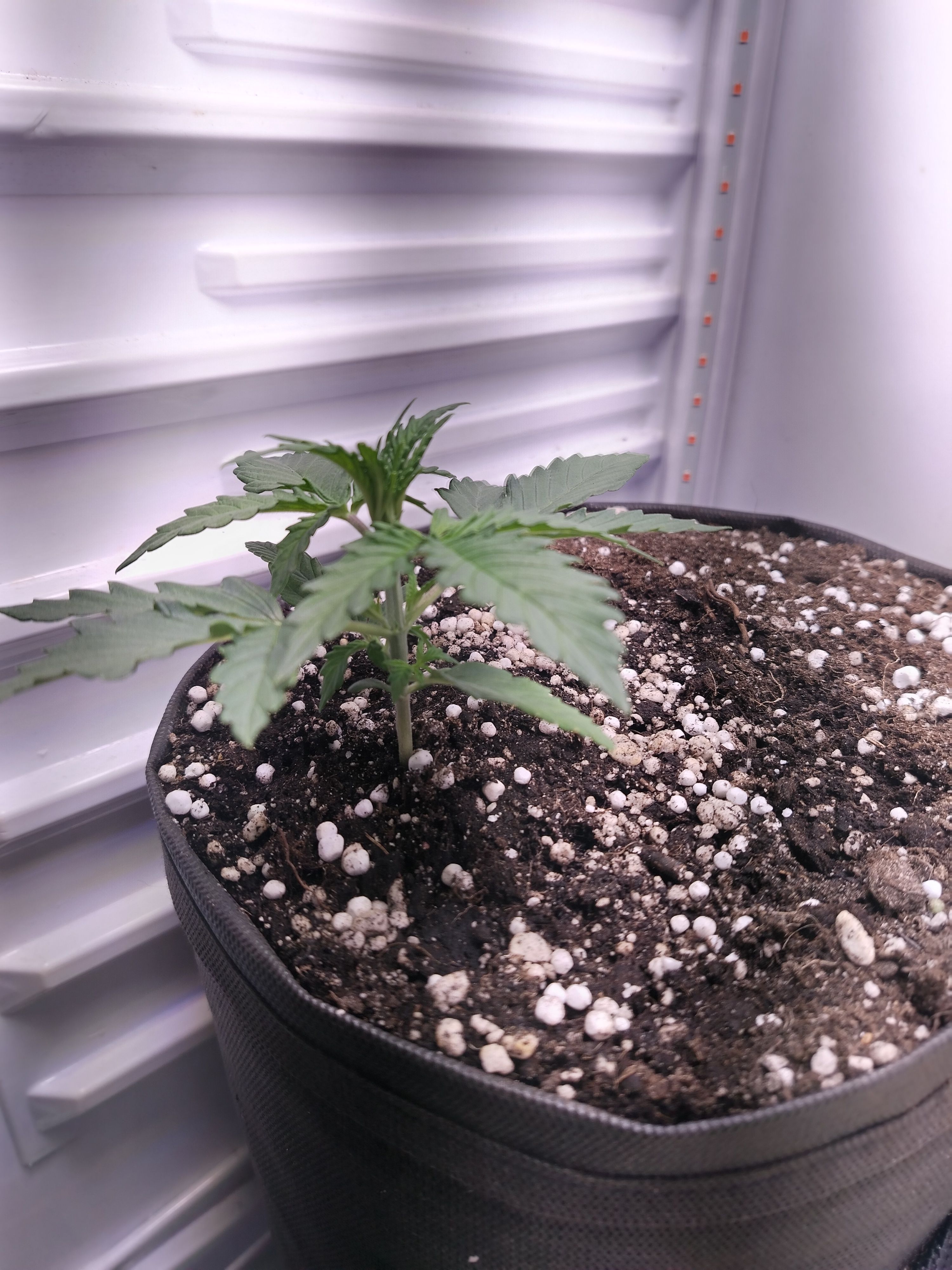 Всем привет! Нам пошла 3 неделя) растём потихоньку! На мой взгляд вроде всё хорошо. Полив пока всё так же водой каждое утро ппм137-150, пш 6,5 - 6,7. С каждым поливом увеличиваю объём вливаемой воды и площадь полива. До дренажа пока не лью. Думаю начать подкармливать со следующей недели 0.25 от базы трипарта. Да и наверное гнуть начинать пора. В общем, едем дальше. Ах да, ещё же есть клон, которому пока не очень хорошо. Он поливается через день, а то и через 2. Листья нового этажа в размере увеличиваются, только очень медленно.Но ничего, я не тороплюсь. Понаблюдаю.