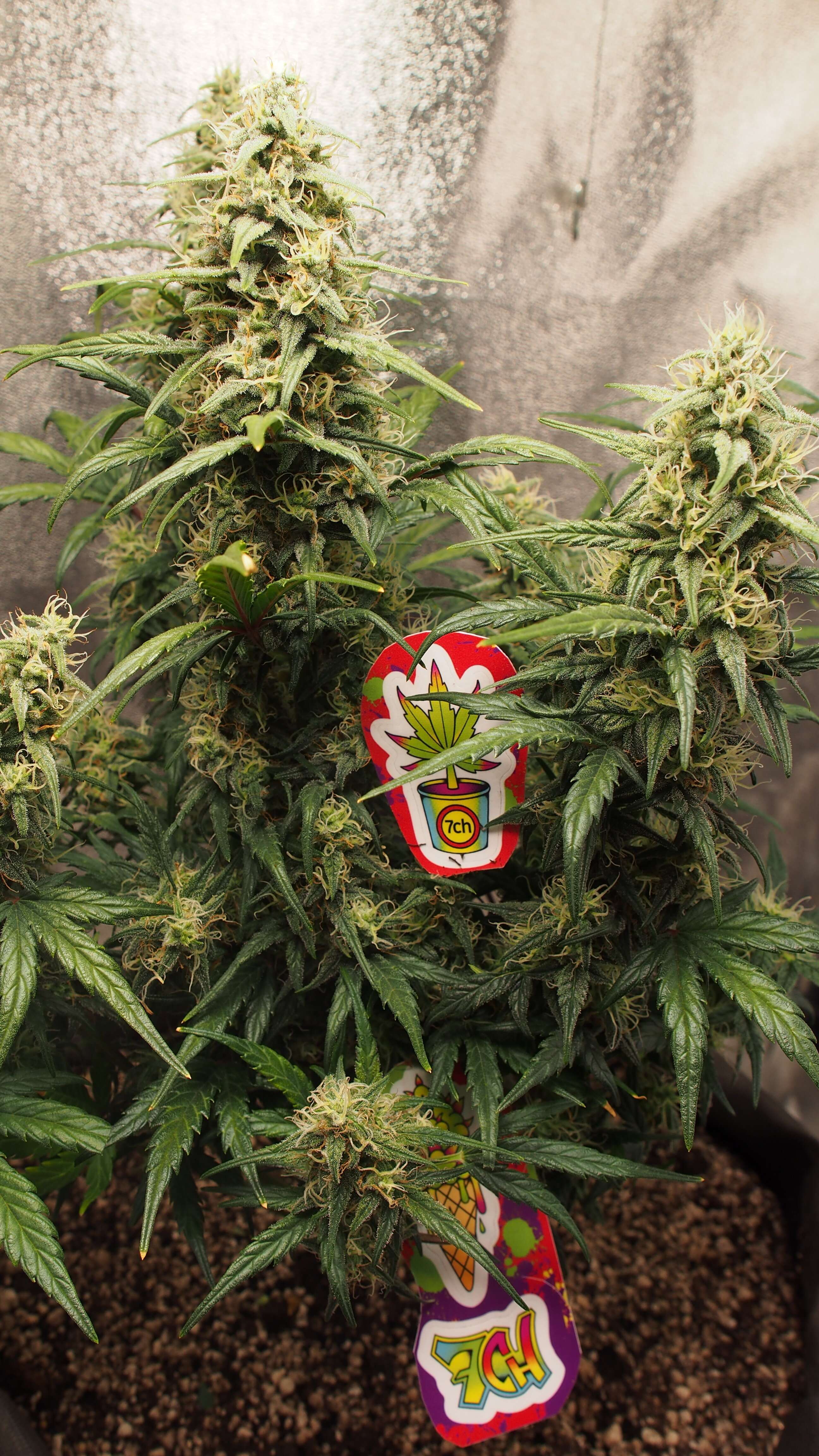 Я могу констатировать, что то, что получилось на сегодняшний день, это отличный кандидат на стелс-гровинг или микрогровинг.Все условия тут соблюдаются: очень короткие сроки веги/цветения, высота до 40 см, очень слабый запах (практически нет на сегодняшний момент), очень крепкие стебли и сплошные плотные соцветия. Запах - он практически отсутствует на текущий момент, едва уловимый привкус лимона. НО, если вы потрагаете руками ветки или соцветия, то тут же все наполняется запахом лимона, скунса, фруктов, мармелада. Все пальцы становятся липкими - т.е. формирование трихом и смолы идёт полноценно.