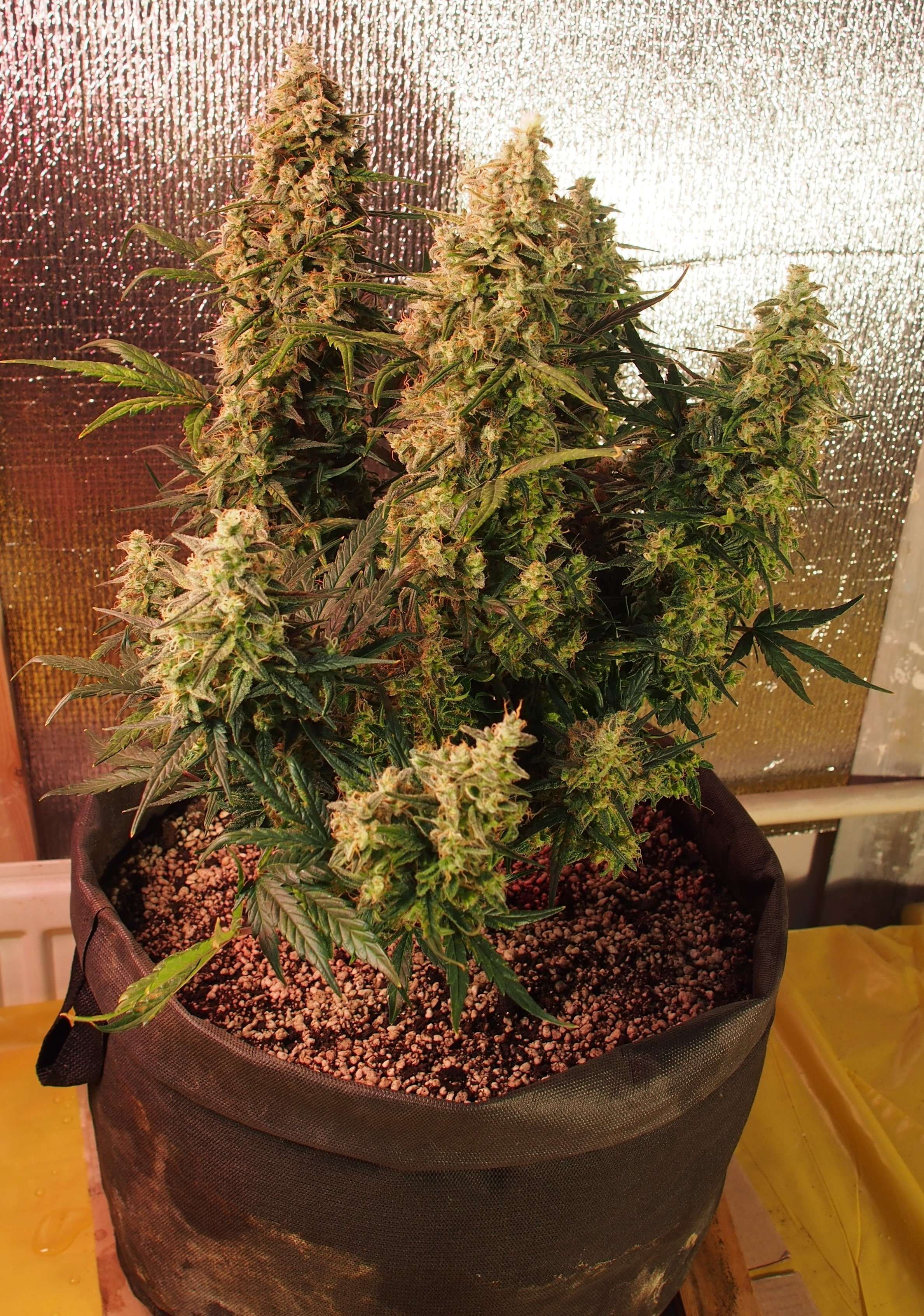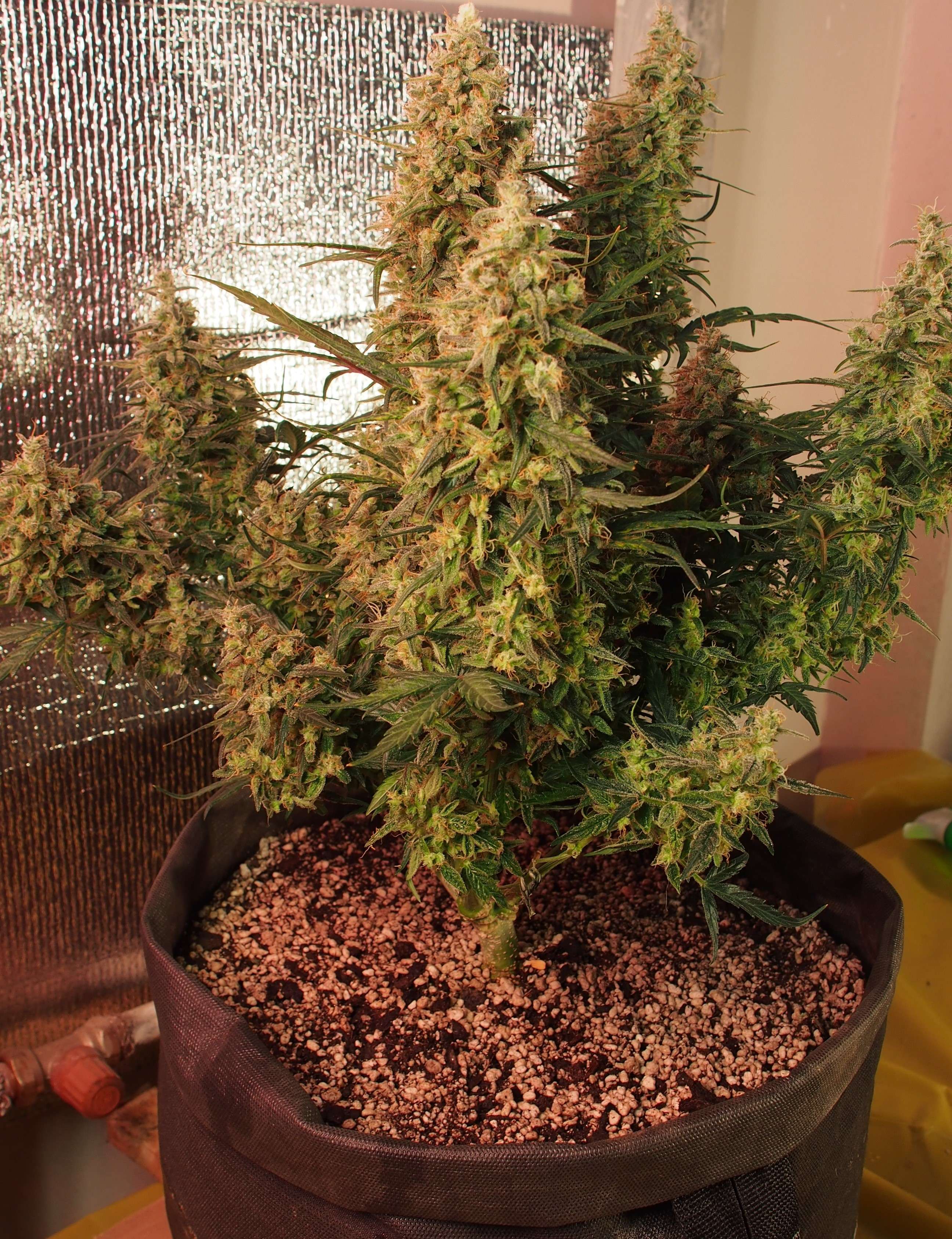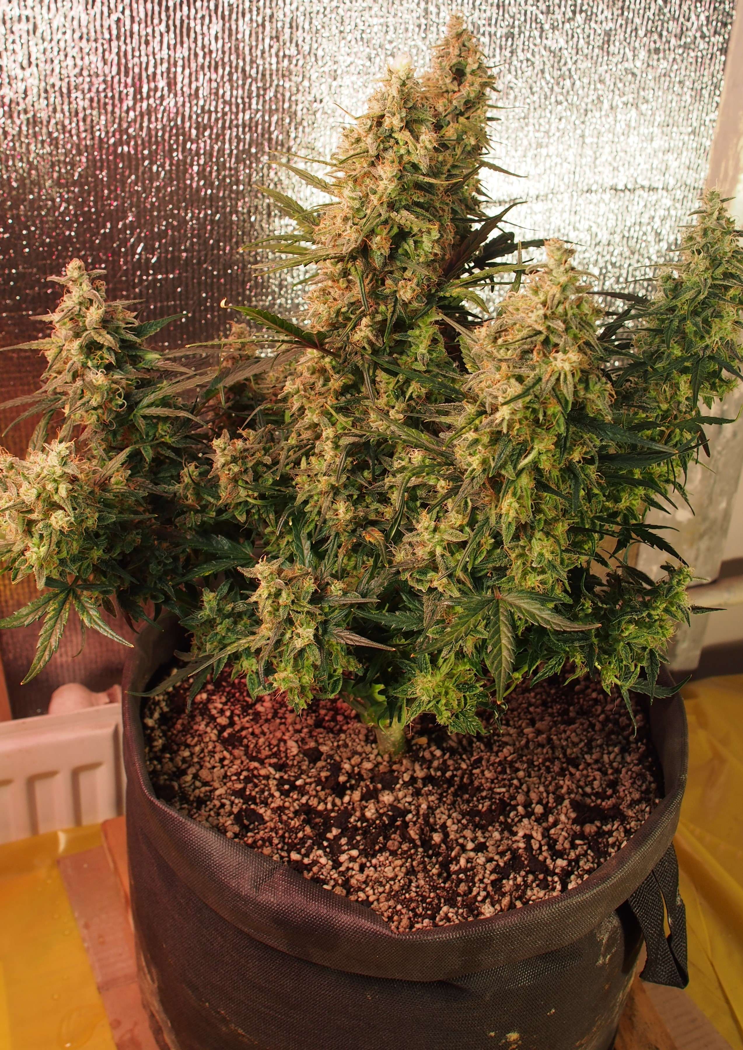 Запах: так и остался слабым и.. чисто хейзовым: лимон, фрукты, ваниль и чуть "чего-то скисшего" - настолько комфортный запах, что угольный фильтр не использую. Теоретически такой кустик мог бы спокойно стоять где-нибудь в комнате не привлекая лишнего внимания.
