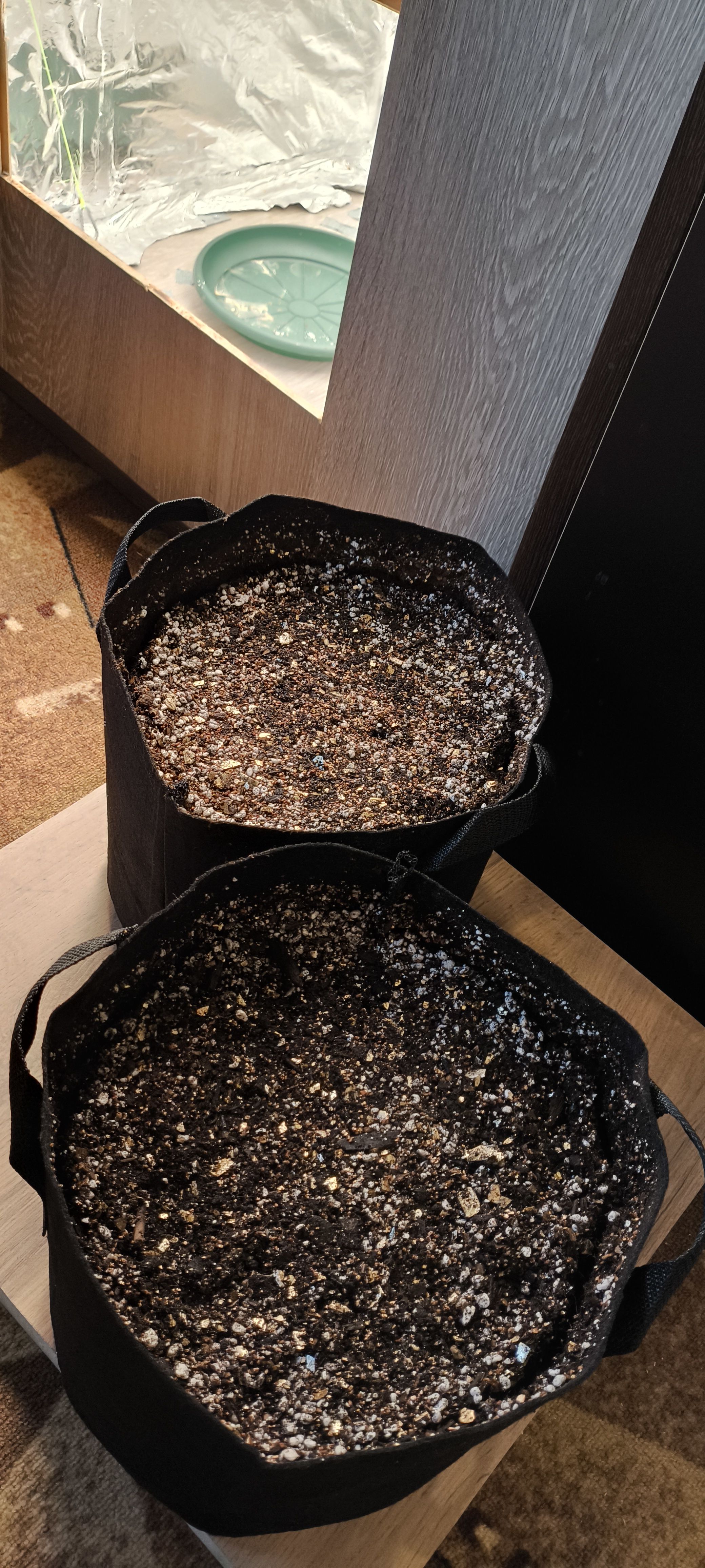 Взял мешки-горшки на 15 л, на дно кинул пенопласт, взял землю для цветов, смешал ее со средним/мелким вермикулитом 2 к 1. Семка в ватку, вода комнатной температуры, пакетик, выдох, на старт!