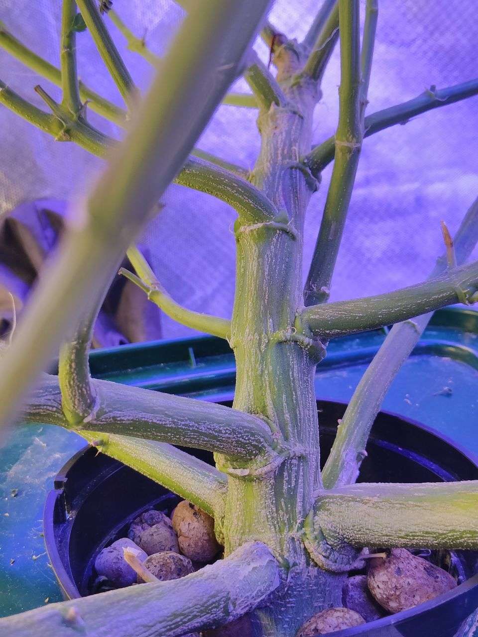 Растиха похожа на сативу и странно цветет по верхам - появились однопалые листья. Ствол толсченный - а-ля великий дуб )