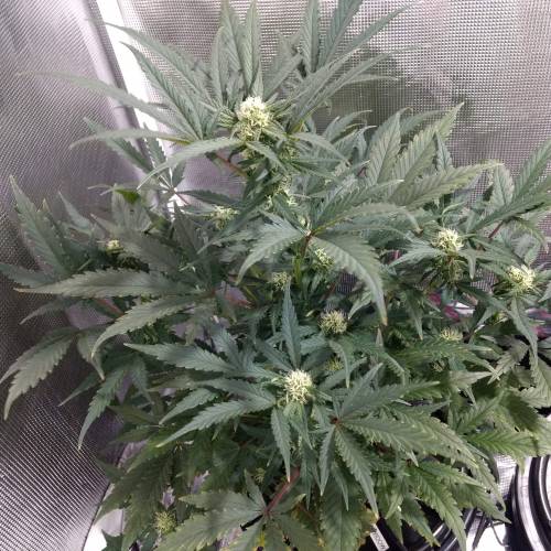 Цветение идёт полным ходом, шишки постепенно приобретают осязаемую форму и становятся всё больше. Автор репорта отметил появление насыщенного запаха – прямое следствие набора массы соцветий. Grow General Purpose Formula был заменён на Bloom Blooming Formula – специальный комплекс, предназначенный для периода цветения.
