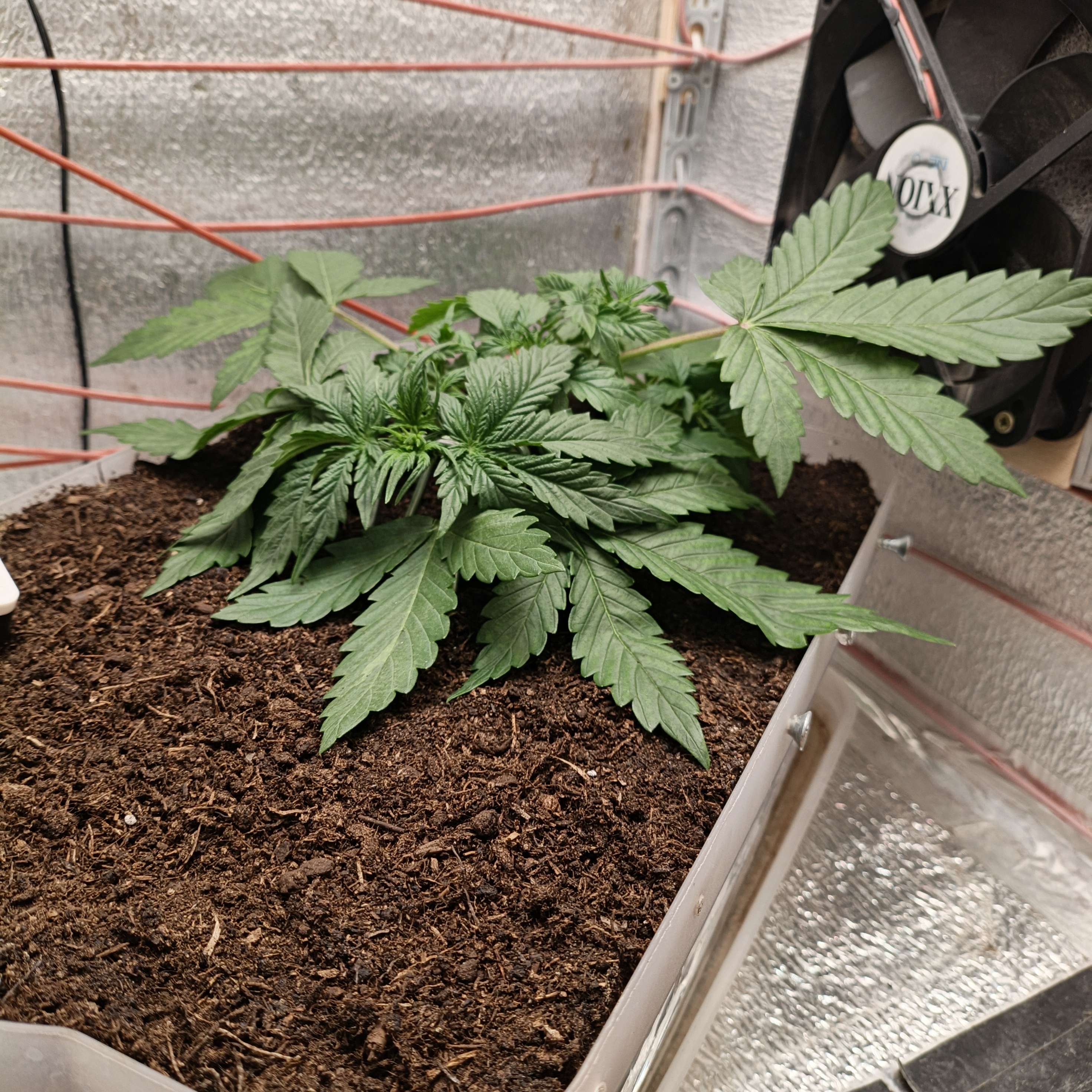 Растяжка идёт на пользу. Стелиться красиво, доросла бы до края горшка?!)